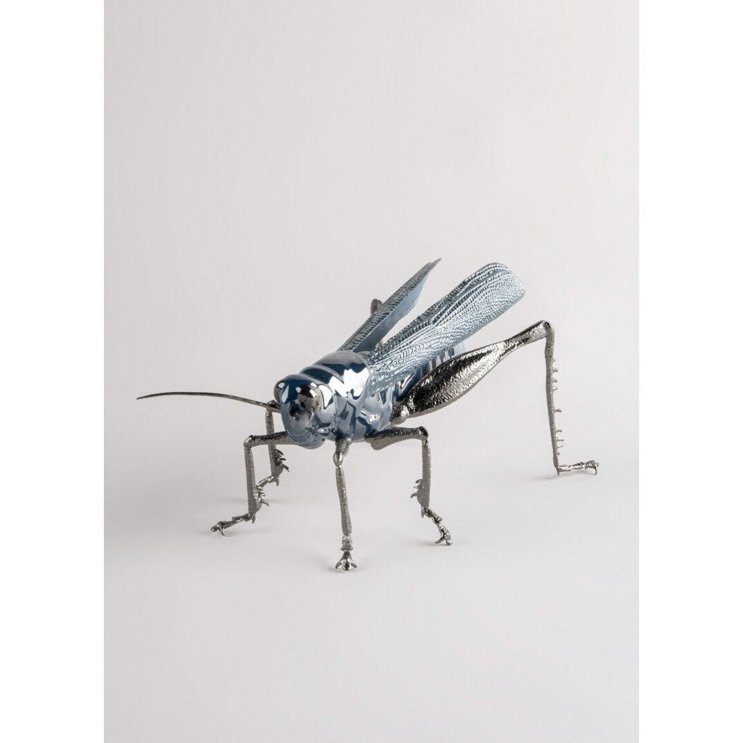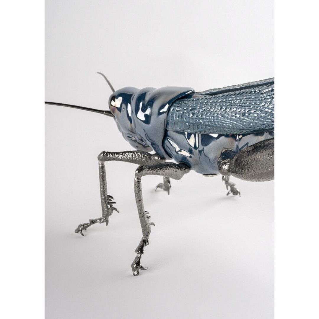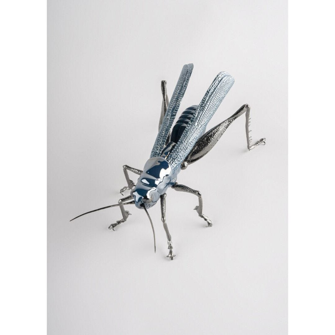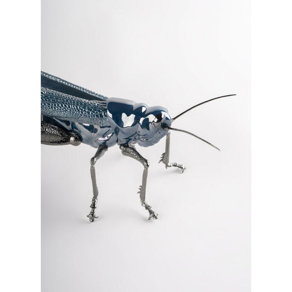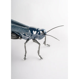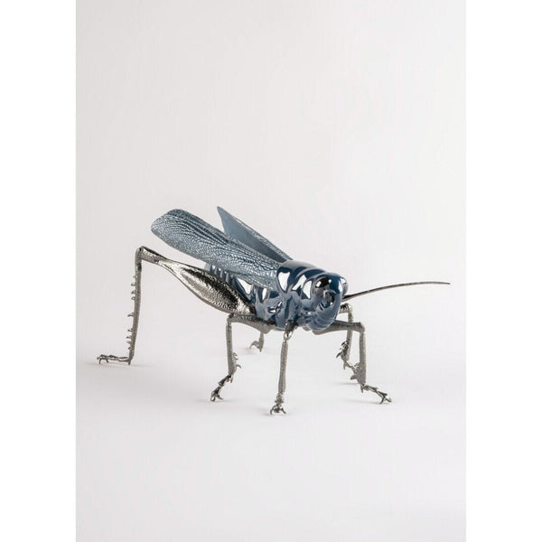 The Awesome Insects collection now has a new member with the grasshopper, a creature that symbolizes good luck, prosperity and change. Finished in glazed porcelain, it is decorated with deep blue pearly luster with touches of turquoise in matte and glaze on the wings, shaded from the tail to the head.