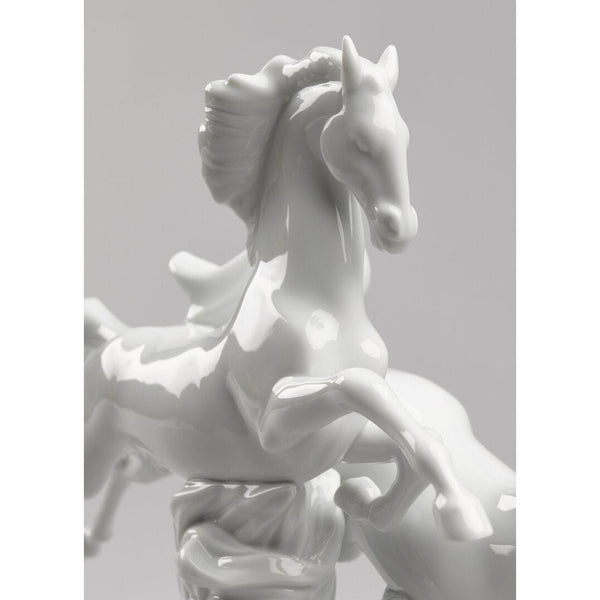 This new version of Horses galloping, a piece launched at the end of the sixties, mantains the elegance, free spirit and movement of this noble animal. In addition, the classic composition and the pure white finish make it ideal for all kinds of interior styles.