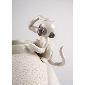 This vase is an homage in porcelain to these intelligent, sociable and familial primates, which are our close relatives. There are around 260 species of monkeys in the world, many of which are under serious threat of extinction. In addition, the monkey is attributed with many qualities such as the ability to overcome challenges, steadfastness and tireless energy. Lladró has focused its gaze on these primates and portrays them in porcelain, depicting them with precision and underscoring the playful, inquisitive character for which they are known. Because our planet and all the species that inhabit it need this kind of care and attention.