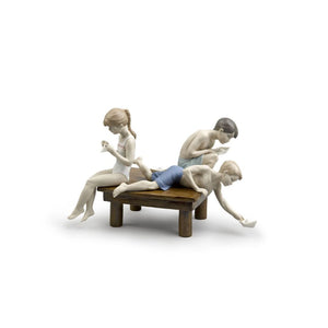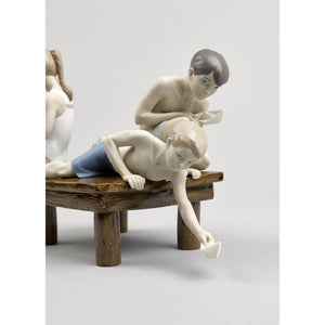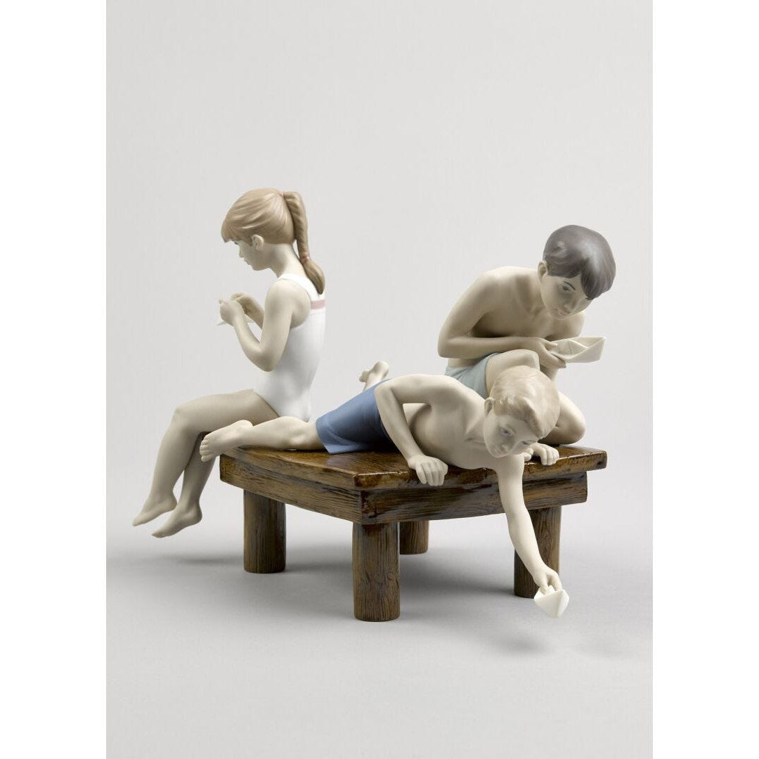 Childhood, summer, holidays and all the time in the world ahead. Simple little paper boats symbolise freedom, play and the sensations of an unforgettable time in life. A matte porcelain piece, finished in soft pastel colours and enamels on the jetty, ideal as a gift, collectible or decoration.
