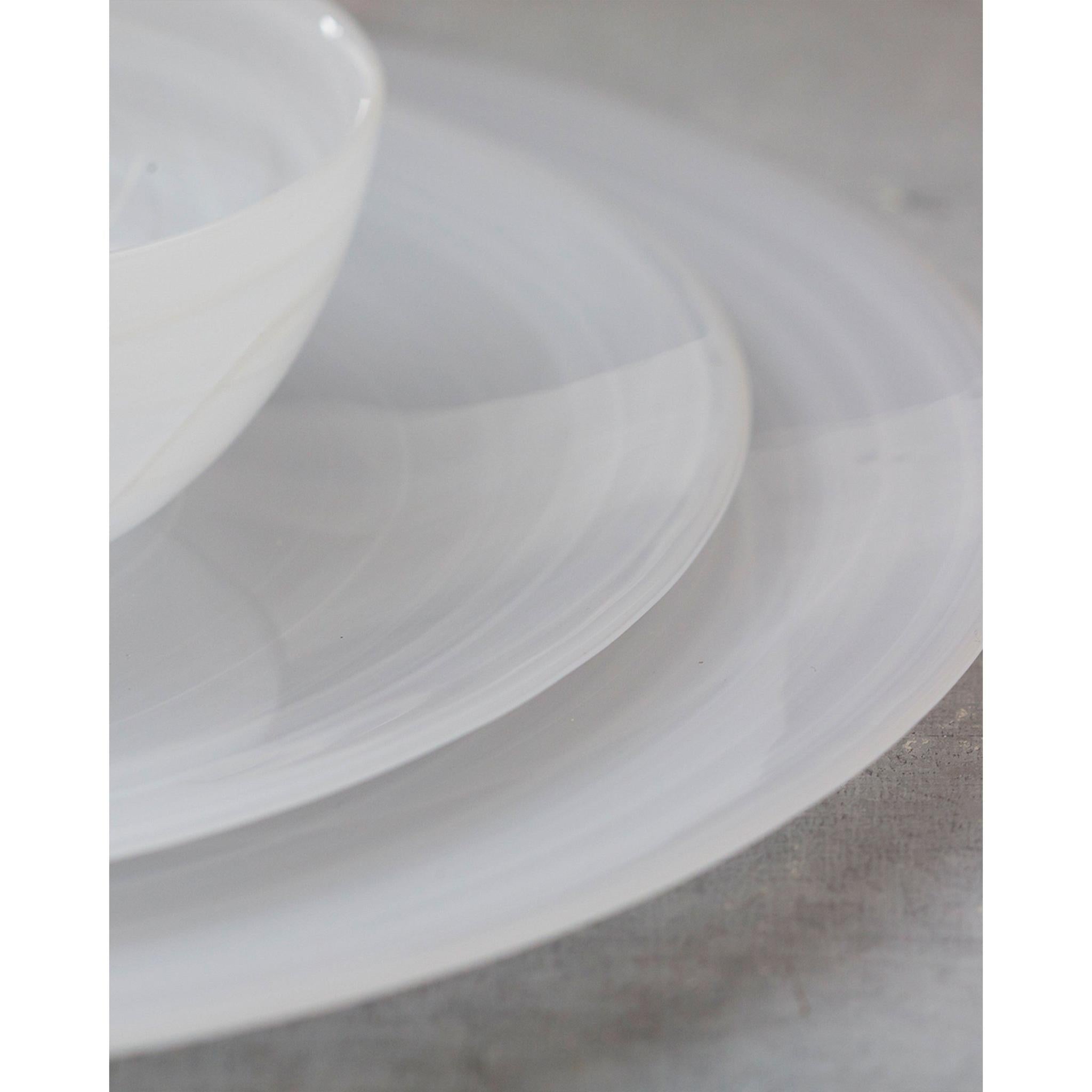 Rich in form and finish, our White Alabaster Collection is the perfect touch for this seasons festivities. With its opulent swirls of color, this White Alabaster Charger Plate is sure to be a head-turner at your next gathering. Our Alabaster dinnerware is dishwasher safe. Comes as a set of 4.