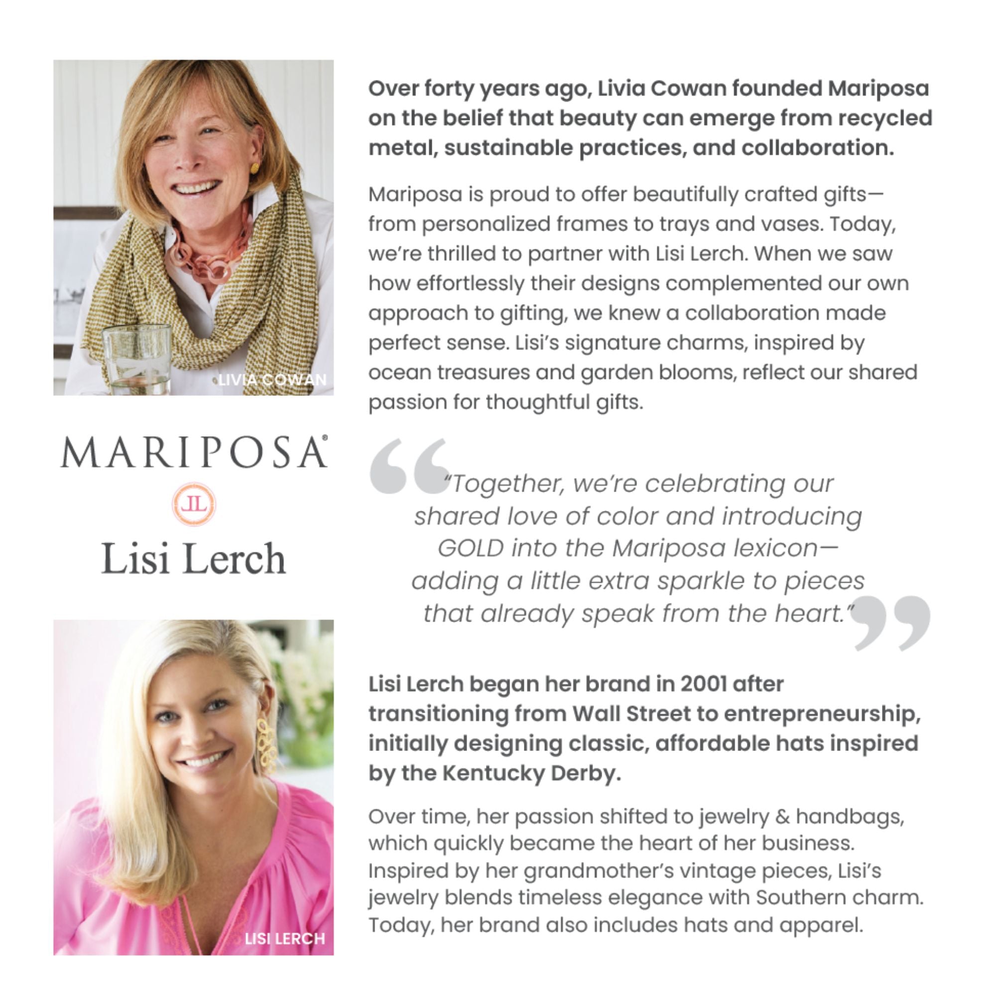 Mariposa is proud to partner with Lisi Lerch, whose eye for elegant, meaningful design aligns perfectly with our mission of offering thoughtful, beautifully crafted gifts. We've admired Lisi Lerch's signature charms—playful, personal details that celebrate the joyful themes in people's lives, from ocean treasures to garden blooms and bows! Color Theory is a new slant on our fabulous frames that are meticulously crafted by hand from recycled paper.