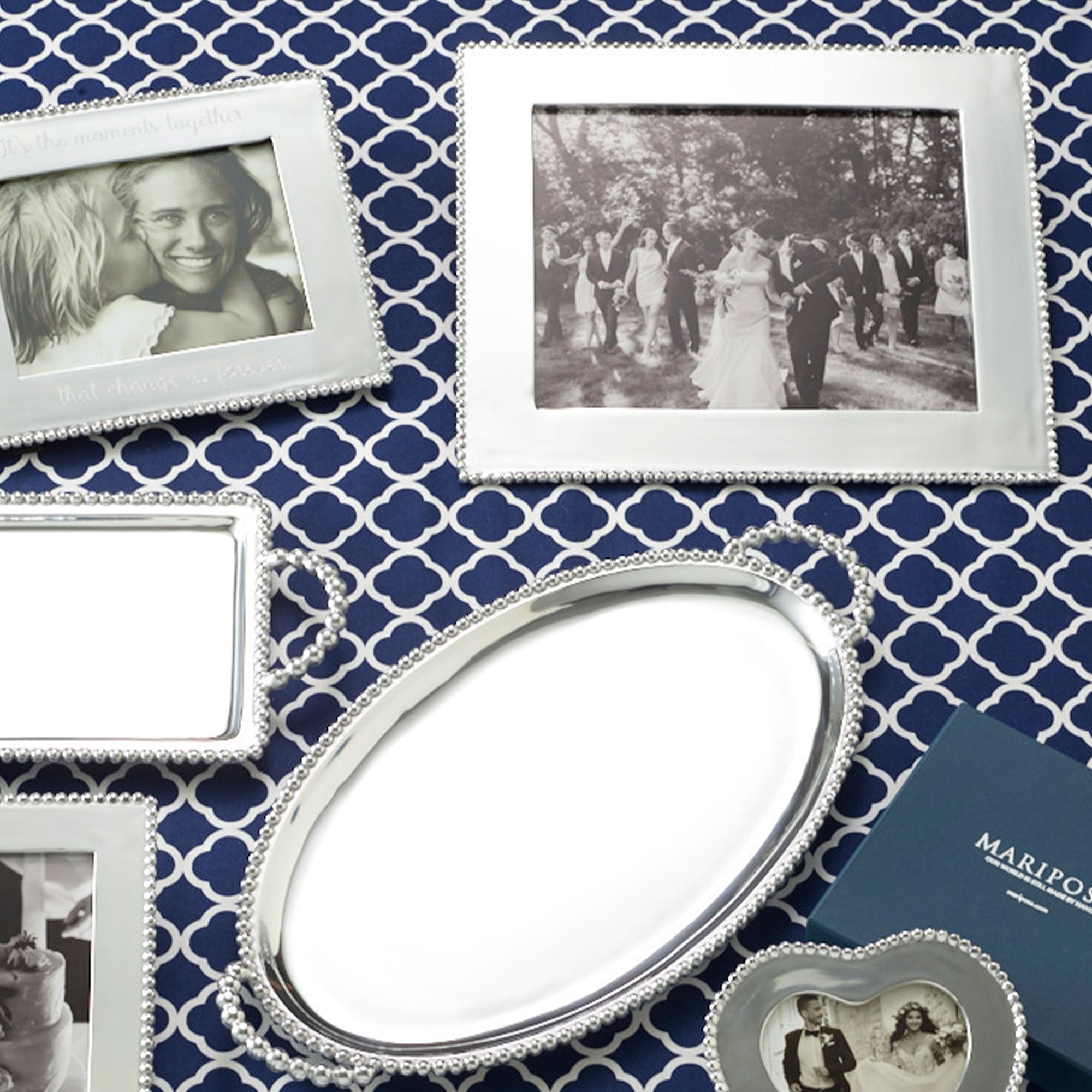 The wide band of our softly polished silver frame gets a classic update when surrounded by a loop of pretty beads. Ideal for all of your cherished photos, engrave with a name or date to add a personal touch.