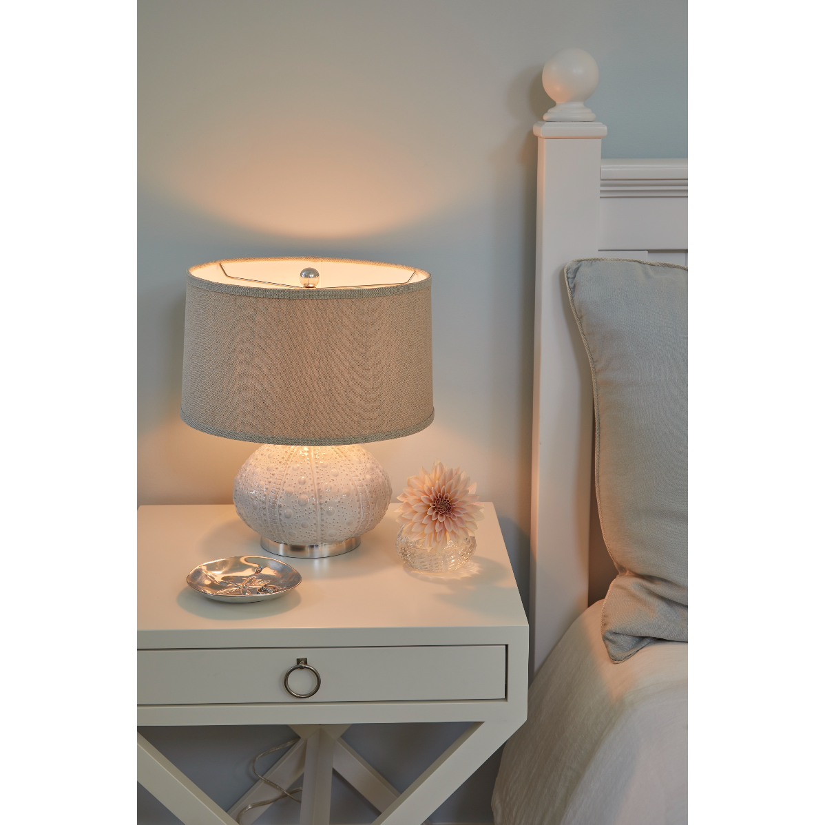 New to Mariposa Home, our Ceramic Sea Urchin Table Lamp brings seaside style to your home. Playful and functional, this lamp brightens up any living space just by being there.