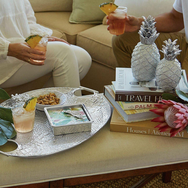 The pineapple has long symbolized friendship, luxury and hospitality. Our meticulously designed 10" Ceramic Pineapple sets the tone of our Palmy Nights Collection with its stately sophisticated design. Pair with its petite counterpart with our 8" Ceramic Pineapple and your palmy night will suddenly transform into one of those endless summer evenings. Beautifully boxed in a Mariposa Gift Box - we make gifting easy!