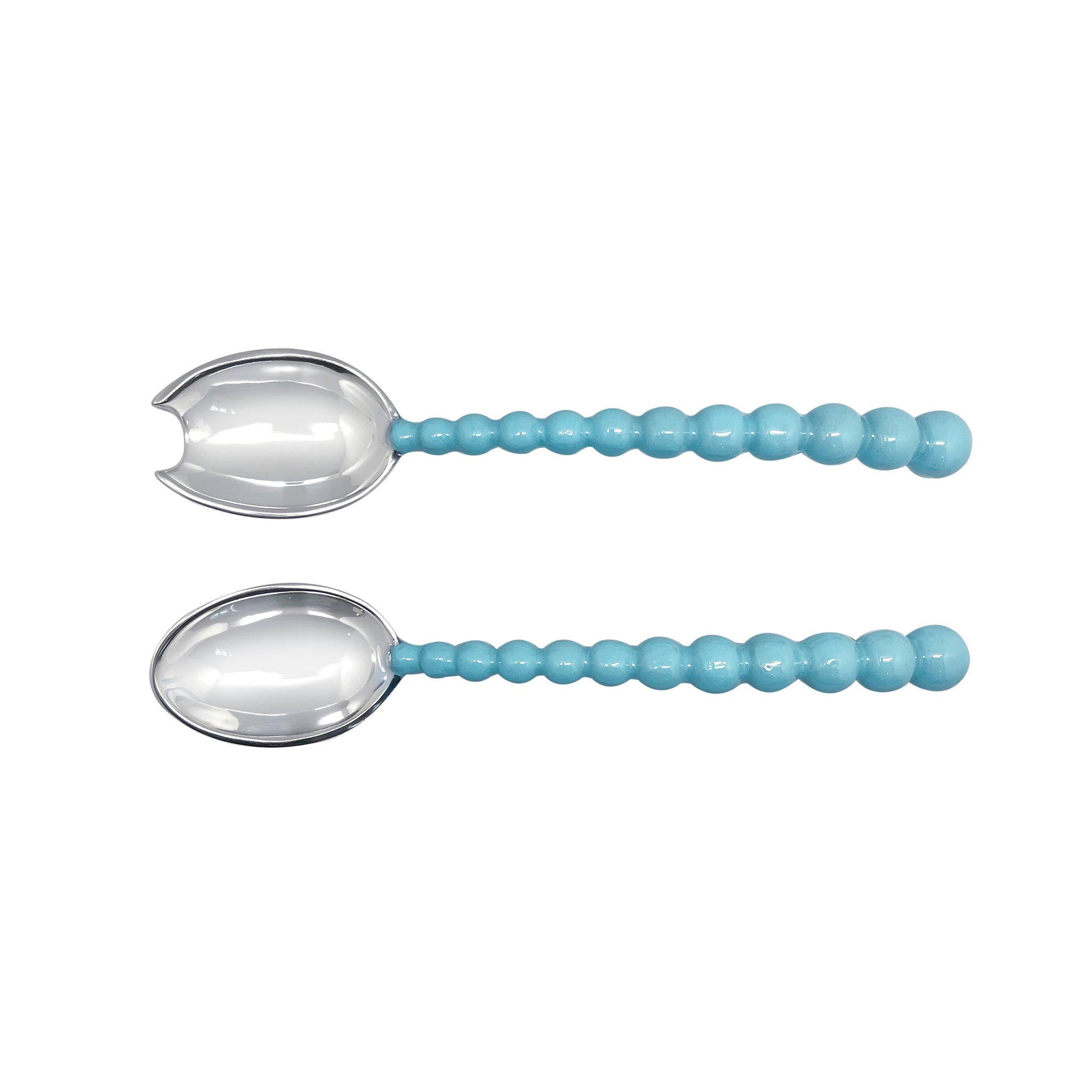 Classic Salad Servers with pearled handles, now dressed in a fresh Aqua color. Just as pearls dress up any outfit, these Salad Servers dress up any Serving Bowl! Part of our signature String of Pearls collection. Handcrafted from 100% Recycled Aluminum painted with food-safe enamel for a fashion forward touch.
