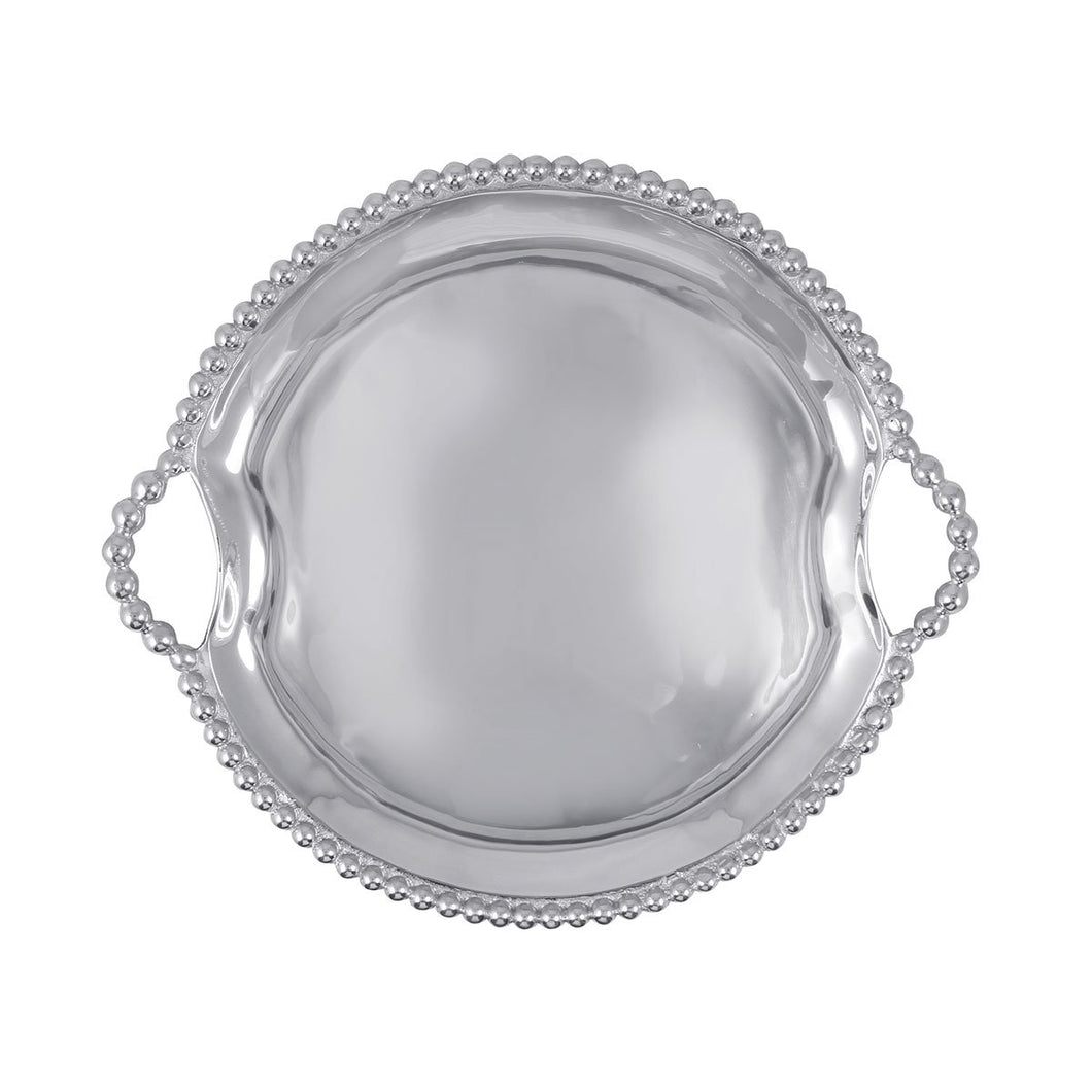 We have a gift for tradition, reimagined, in our String of Pearls collection. A multitude of pearls provide whimsical handles and a luxurious border around our simple, yet elegant, Round Tray. Tray curves slightly at edges for serving sans spills.