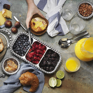 We have a gift for tradition, reimagined, in our String of Pearls collection. The Pearled Small Three-Section Server is a classic piece for any regular entertainer. Or find an alternate use for this stunning piece, by perching it atop your dresser as a jewelry catchall.