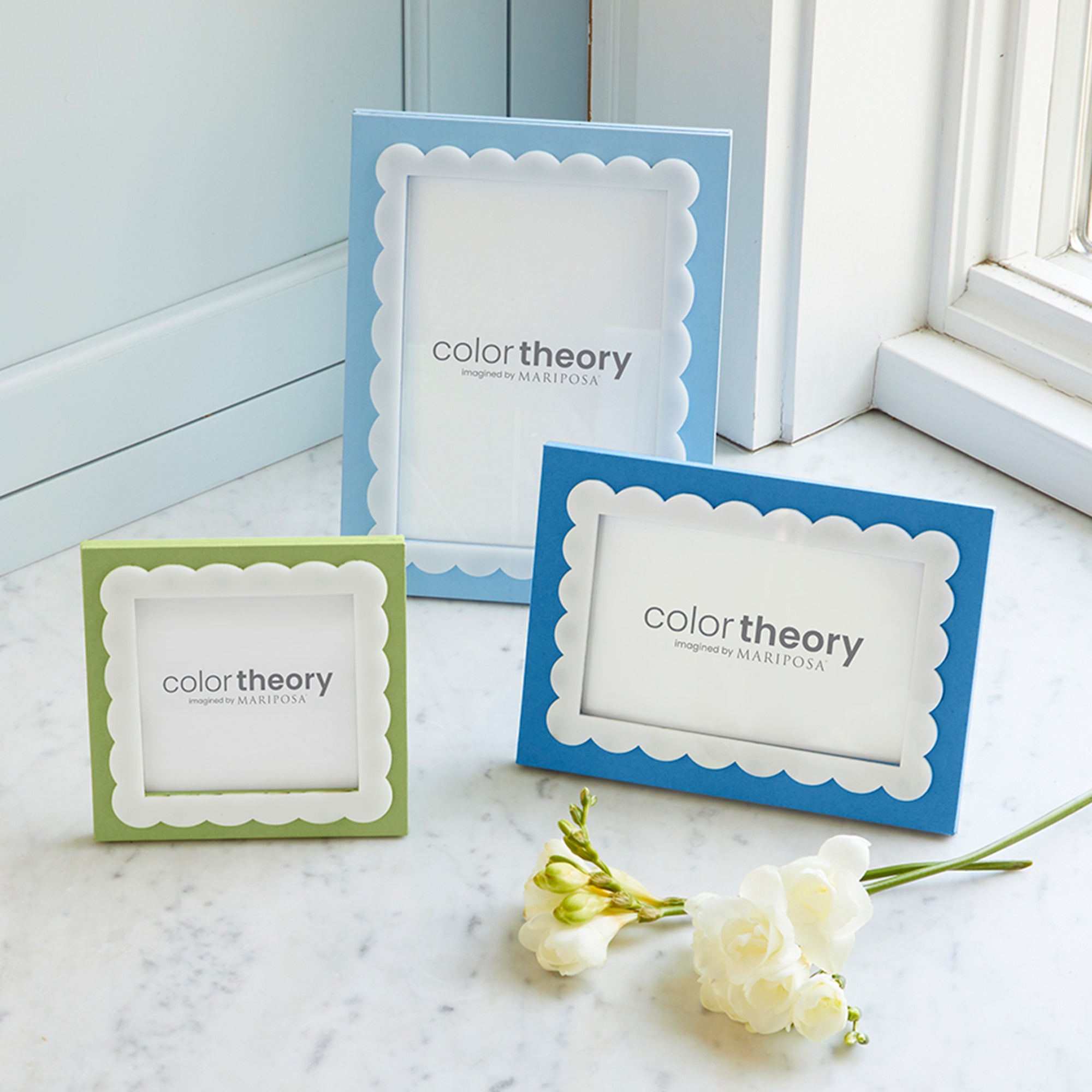 Sustainable style meets playful sophistication in our Color Theory. Crafted from recycled paper and finished with crisp white scalloped acrylic detailing, the Periwinkle Scallop 5x7 Frame brings a fresh, modern edge to your favorite memories. Its lightweight, eco-conscious design adds a touch of charm to any shelf or tabletop.