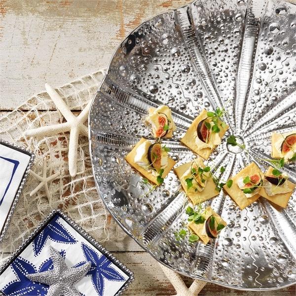 Bring undersea treasures to your table with our Seaside collection. The Starfish Beaded Napkin Box includes a stack of signature Mariposa stripe starfish napkins in teal, green and white.