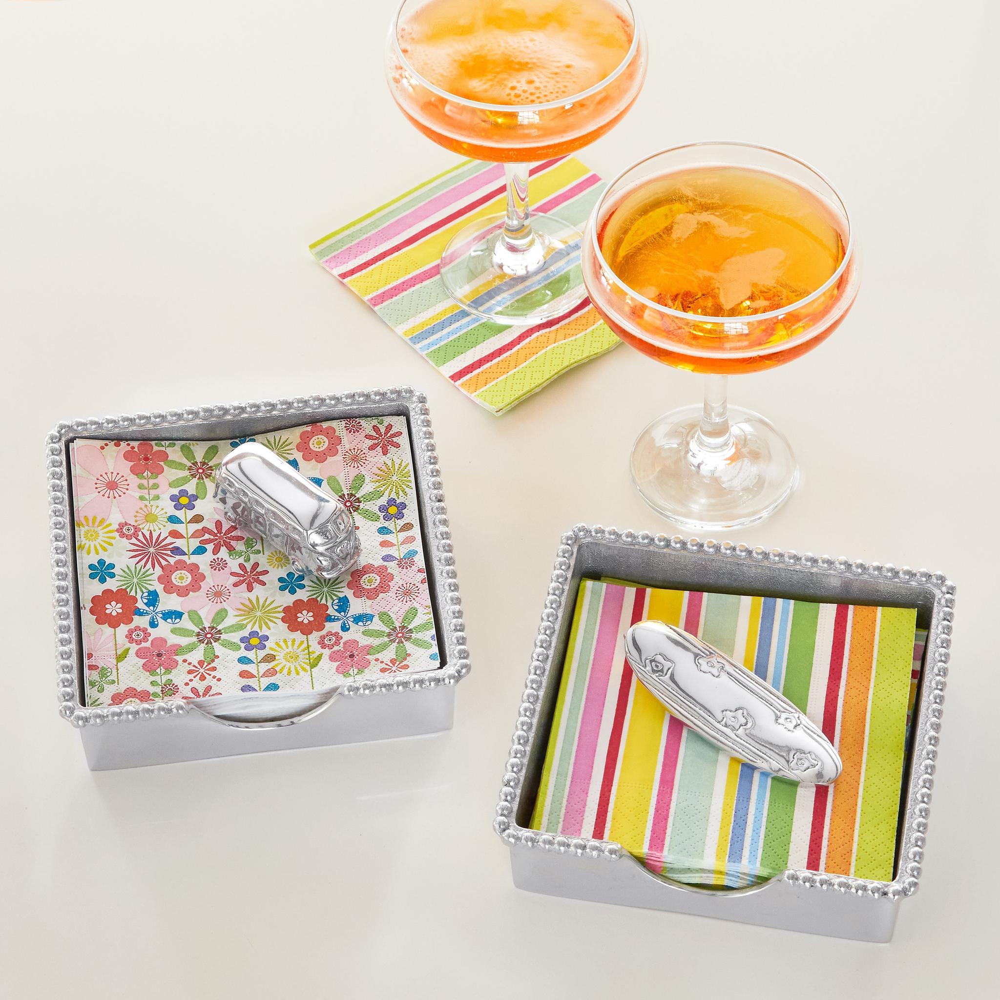 Ride the wave of style with our Surfboard Napkin Box Set! This playful set includes a vibrant cocktail napkin and sculpted surfboard, perfect for adding a splash of beachy fun to your dining table. Bring the surfside charm to your home and make every meal a seaside celebration! Handcrafted from 100% recycled aluminum.
