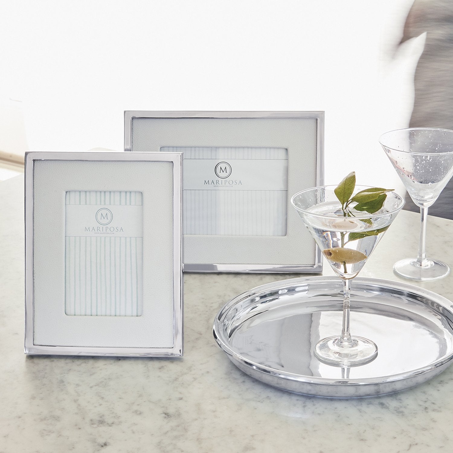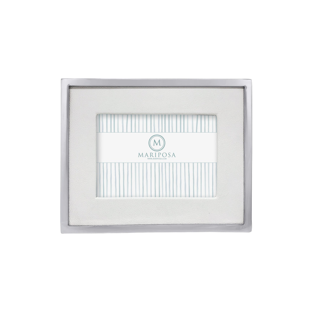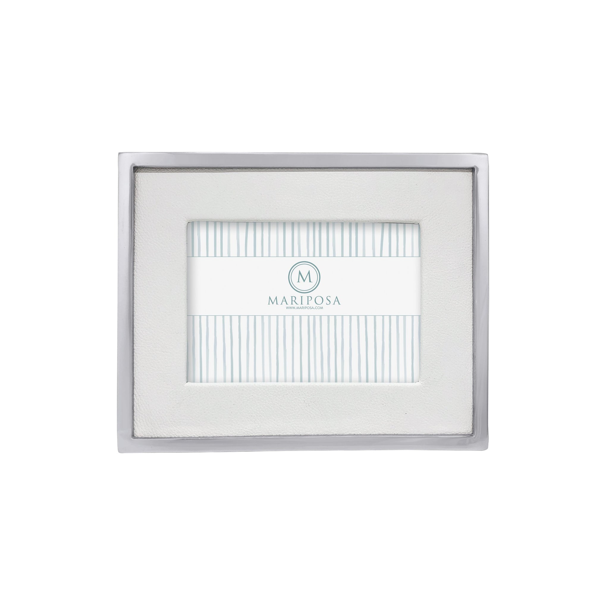 Providing an element of luxe, this modern picture frame is the perfect way to showcase some of your most thoughtful memories. Our White Leather with Metal Border 5x7 Frame has a clean white leather that wraps around your photograph, and a sharp aluminum border to top of the look. Personalized by a picture of your choice and gift boxed with our classic packaging, this will make an ideal gift.