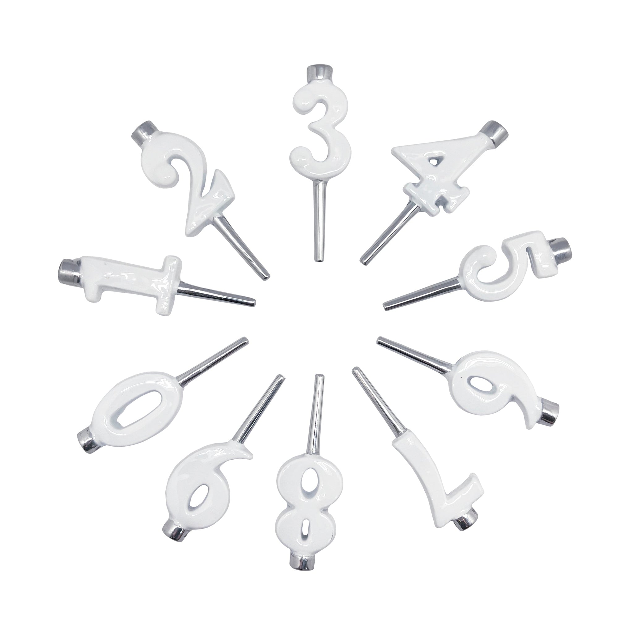 Celebrate birthdays and anniversaries for years to come with our whimsy White Candle Holder Set. Set includes numbers 1-10 in a petite box, all beautifully handcrafted to last through the years. A customer favorite baby shower gift! Handcrafted from 100% Recycled Aluminum painted with food-safe enamel for a fashion forward touch.