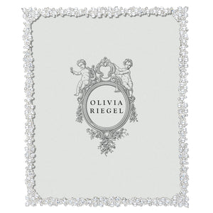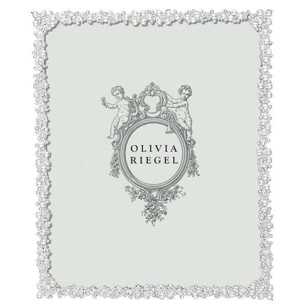 Stunning clusters of hundreds of hand-set clear European crystals in silver finished cast pewter. Elegant gray moiré silk back with easel for vertical or horizontal placement.