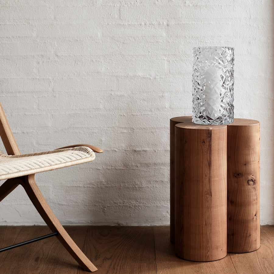 The irregular geometry of Carat Hurricane from Orrefors produces beautiful reflections of light in the crystal. With its tall cylinder shape, the candle holder also doubles as a vase, adding to its exquisite design and functionality.