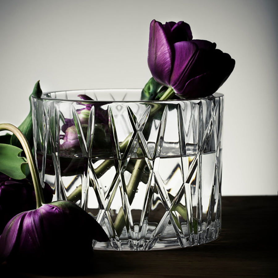 City Bowl from Orrefors has cuts that criss-cross the surface of the thick crystal, creating an asymmetric look, which contributes to the distinct identity of the collection.