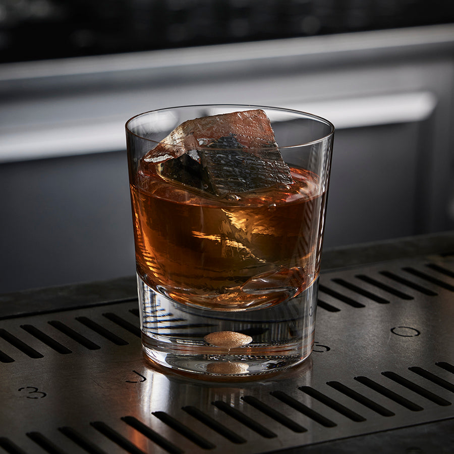 Intermezzo Double Old Fashioned, holding 13.5oz, was designed in 1984 and is well suited for serving various spirits or cocktails with or without alcohol. It is a large glass with room for a lot of ice, drink mixers, and juices. The glass is mouth-blown in Sweden.