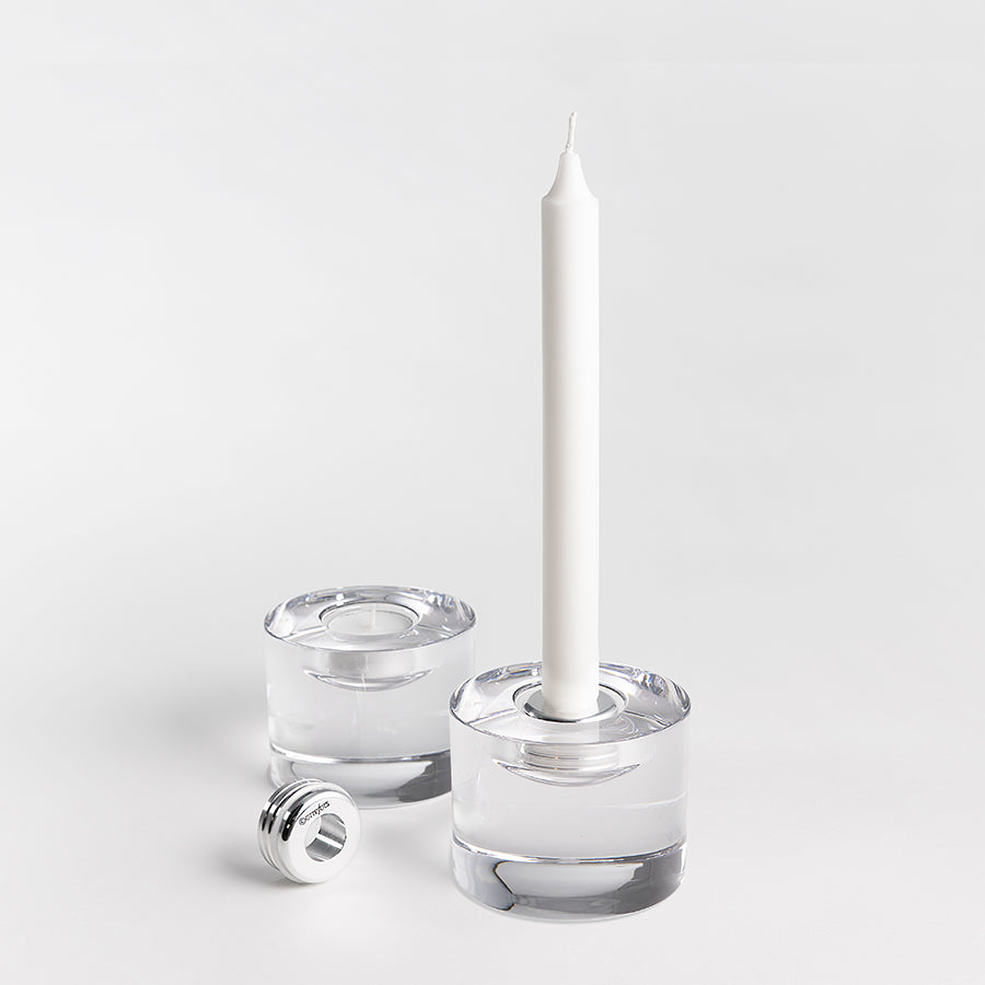 Orrefors Lightswitch is an adapter for candle holders that converts the tealight holder into a candlestick holder.