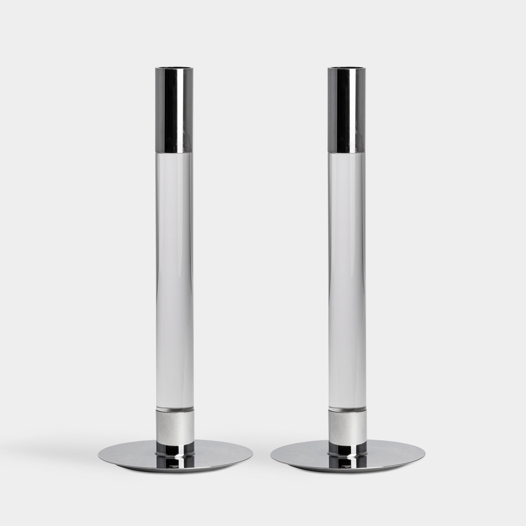 Lumiere candlestick from Orrefors elegantly unites the crystal-clear transparency of glass and the mirror-like metal.