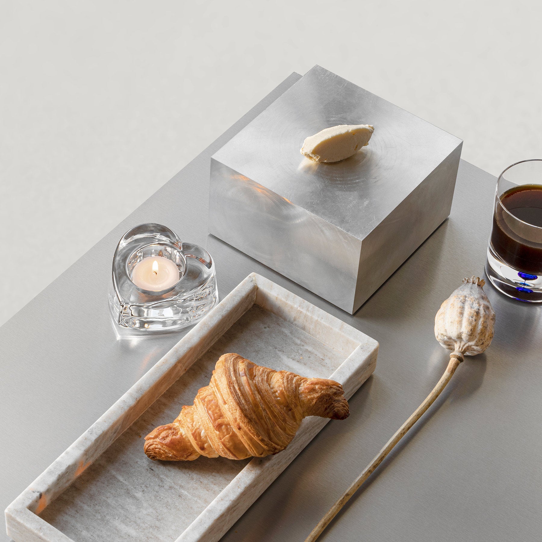 My Heart votive from Orrefors is made of thick, clear crystal with a round hole, allowing the candle to sink down enough for the flame to beam through the glass, which brings soft candlelight.