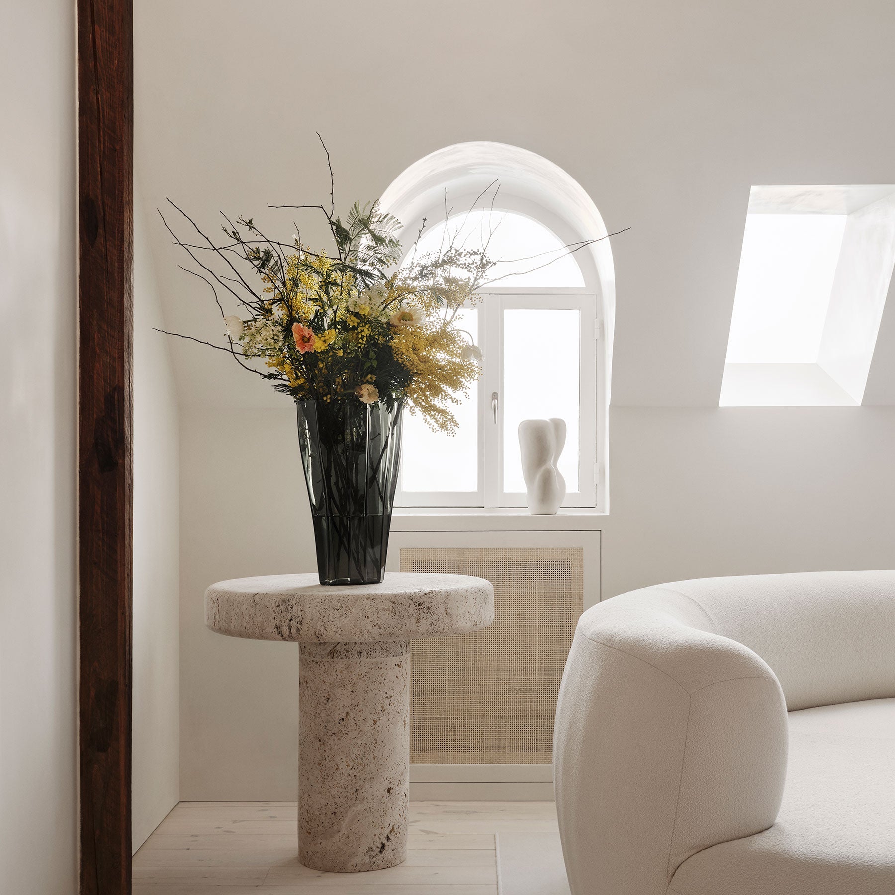 The large Reed vase from Orrefors can be placed on the floor and in spacious rooms as a vessel for large greens and florals.