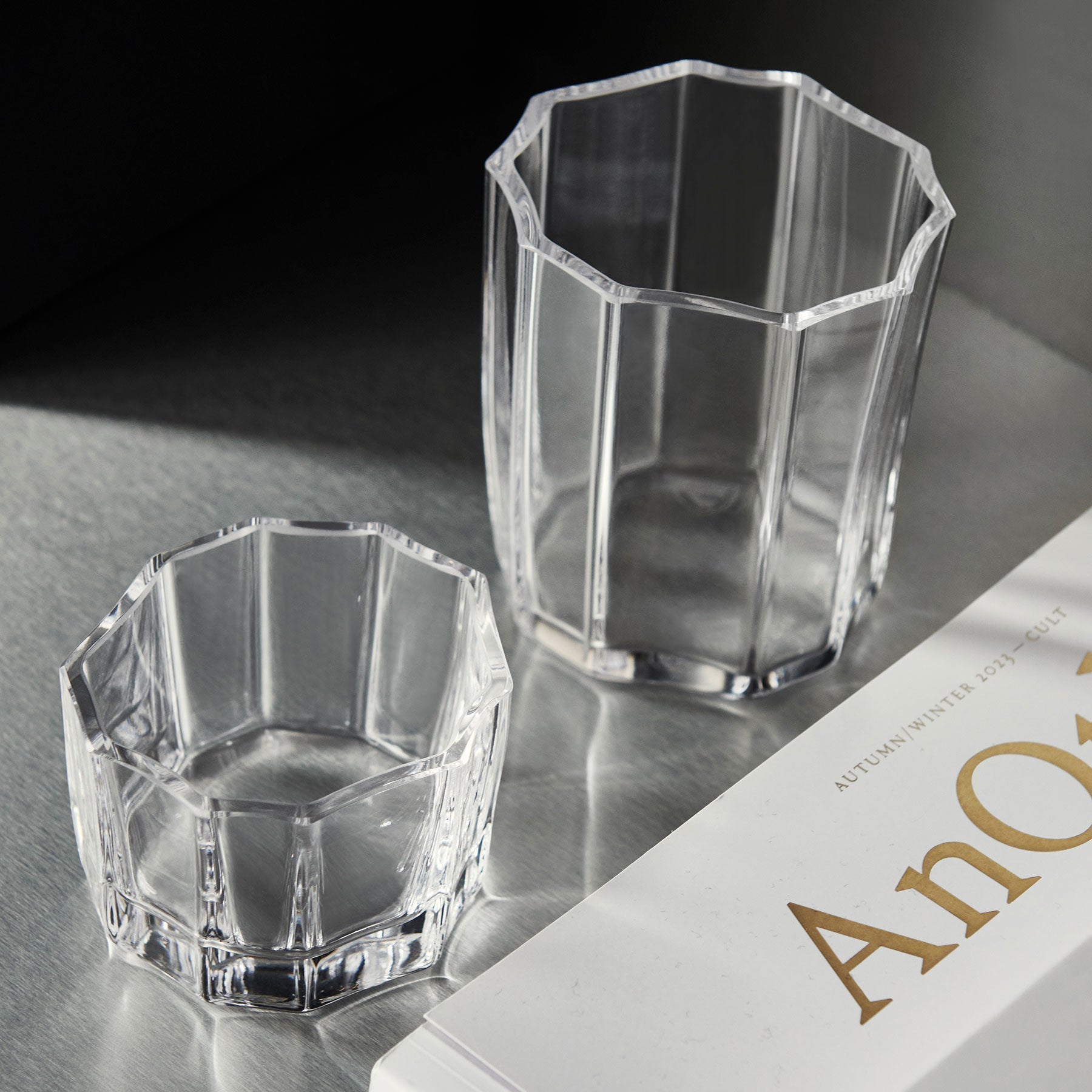 With Reed, Monica Förster highlights the folds and in the process creates a sense of organic movement. A gentle swaying in the hard glass. The collection features a variety of vases, two votives and a hurricane lamp. This votive is made of clear glass and is 3.5 inches high.