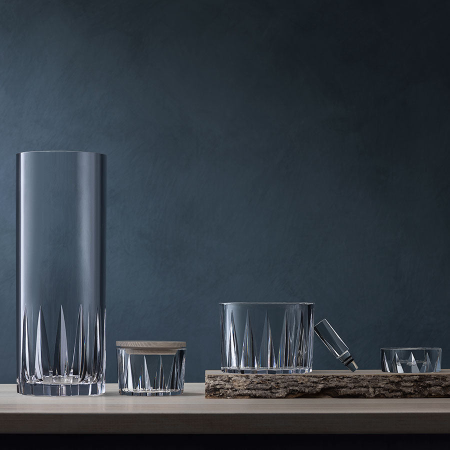 Sarek from Orrefors has deep-cut facets inspired by the motif on wooden baskets made of plaited birch bark, which has a symbolic connection to Swedish nature.