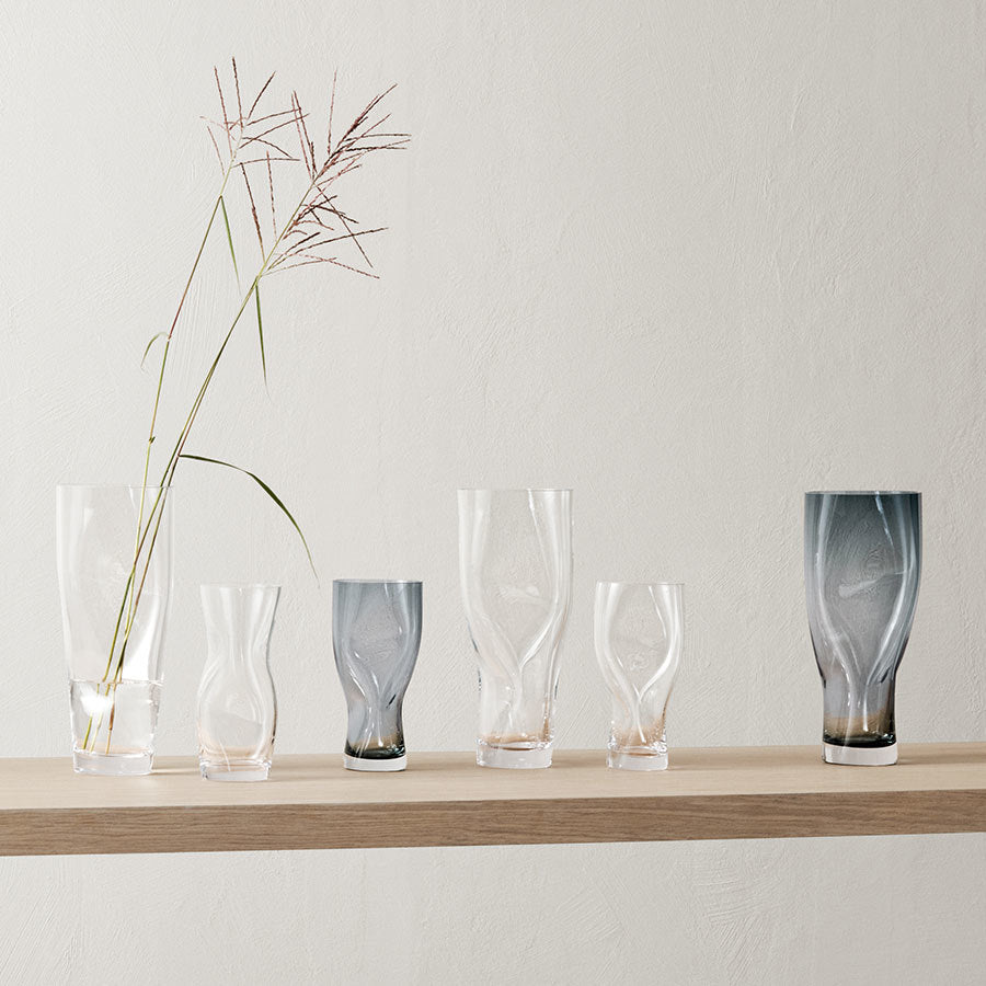 The billowy shape of Squeeze from Orrefors looks different from different angles, and after the vase is blown, while still hot, it is "squeezed" together by hand in two places. These "squeezes" form a cross inside the vase, which holds the flowers in place.