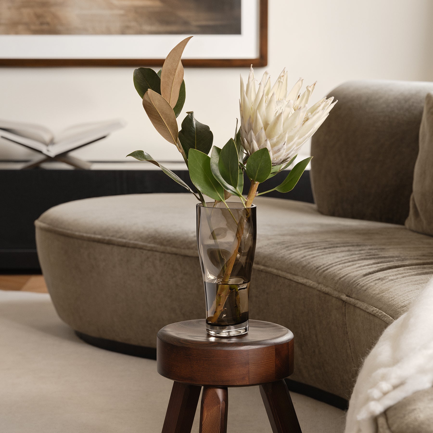 The billowy shape of Squeeze from Orrefors looks different from different angles, and after the vase is blown, while still hot, it is "squeezed" together by hand in two places. These "squeezes" form a cross inside the vase, which holds the flowers in place.