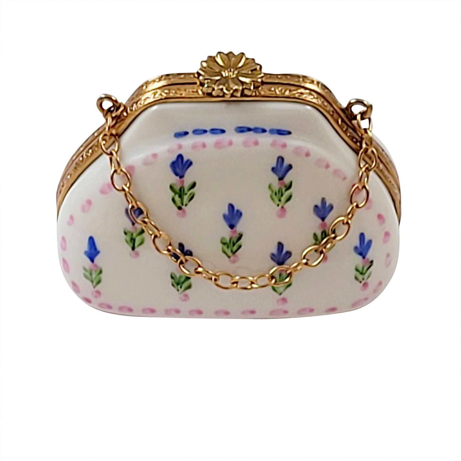 The Rochard "Bluebonnet Purse" Limoges Box is artfully and colorfully hand painted by premier artists using many of the same techniques that were used during their introduction in the 17th century. Steeped in history, Limoges boxes feature exquisite designs, superior workmanship, and the ultimate attention to detail.