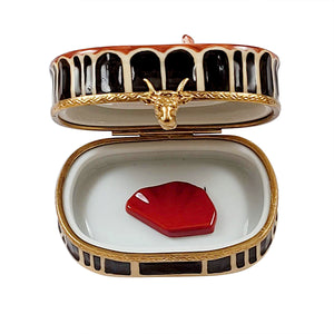 The Rochard "Bullfighting Arena with Removable Red Cape" Limoges Box is artfully and colorfully hand painted by premier artists using many of the same techniques that were used during their introduction in the 17th century. Steeped in history, Limoges boxes feature exquisite designs, superior workmanship, and the ultimate attention to detail.