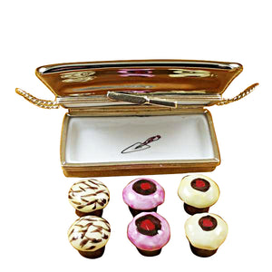 The Rochard Limoges "Cupcake Tray" box is artfully and colorfully hand painted by premier artists using many of the same techniques that were used during their introduction in the 17th century. Steeped in history, Rochard Limoges boxes feature exquisite designs, superior workmanship, and the ultimate attention to detail.