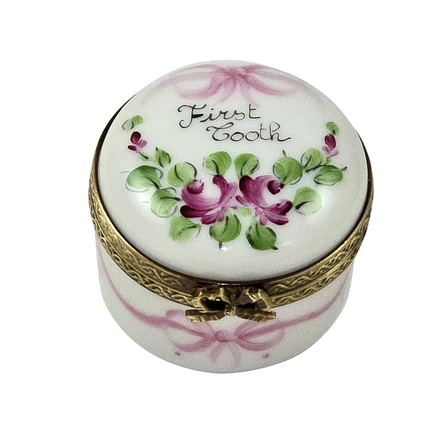 The Rochard "Pink First Tooth" Limoges Box is artfully and colorfully hand painted by premier artists using many of the same techniques that were used during their introduction in the 17th century. Steeped in history, Limoges boxes feature exquisite designs, superior workmanship, and the ultimate attention to detail.