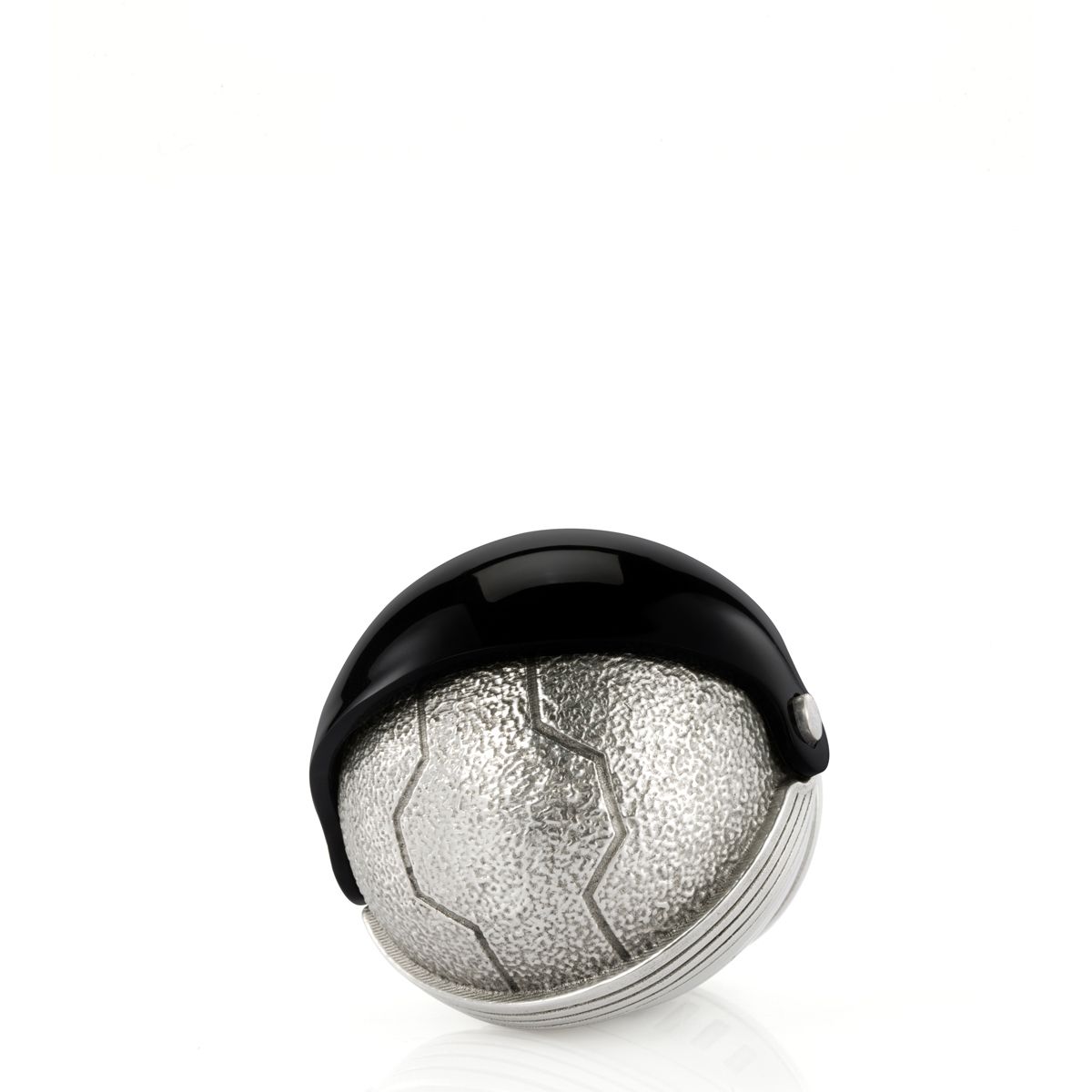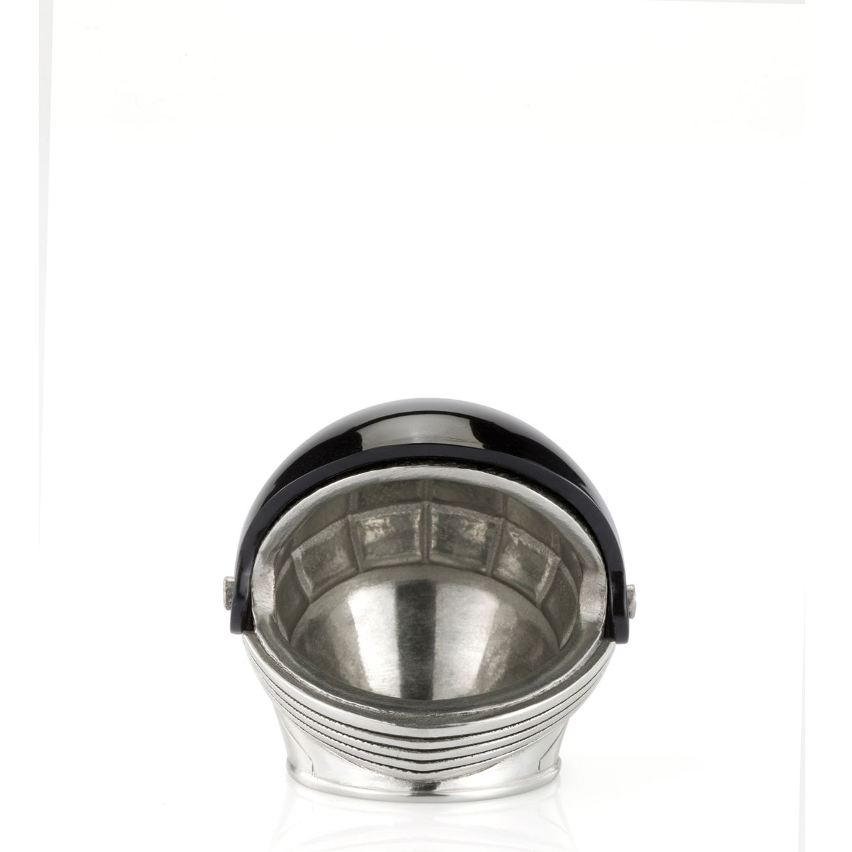 Integral to any spacesuit designed to protect astronauts from hostile environments, the diminutive helmet’s dark visor conceals any human teeth (or alien fangs!) within.