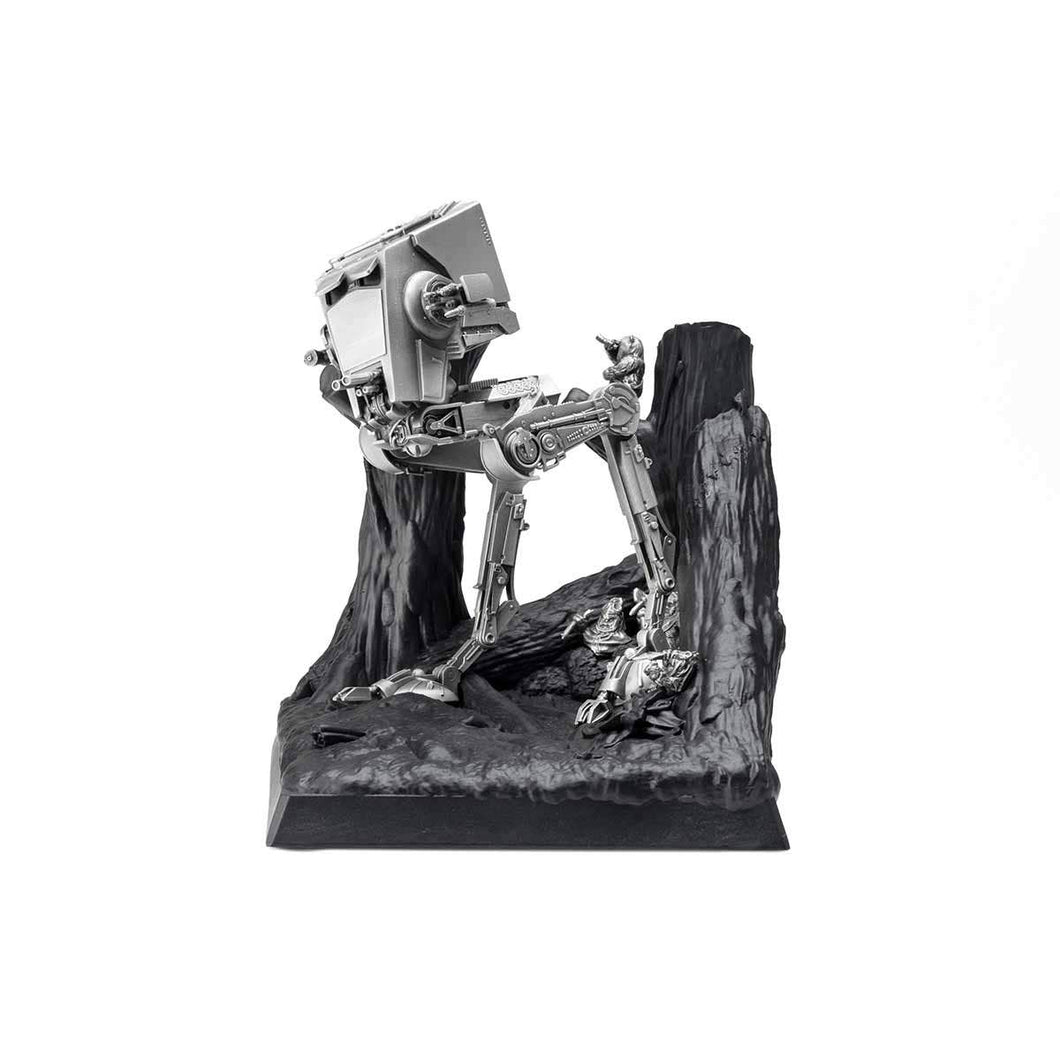 Its name and armaments make it explicit that the All Terrain Scout Transport is built for the toughest theatres of battle, but perhaps its engineers might have better considered its defences against non-mechanical threats. As it hunts down rebel forces on Endor, the AT-ST realises too late it’s just been ambushed by some of the forest moon’s smallest inhabitants. Wonderfully detailed, the diorama doubles as a bookend. In pewter and composite resin.