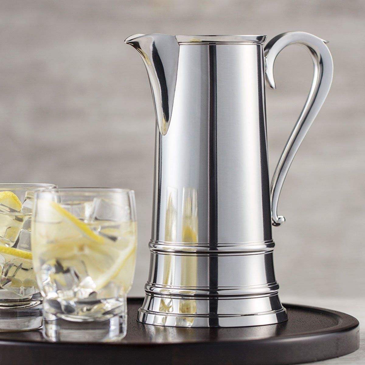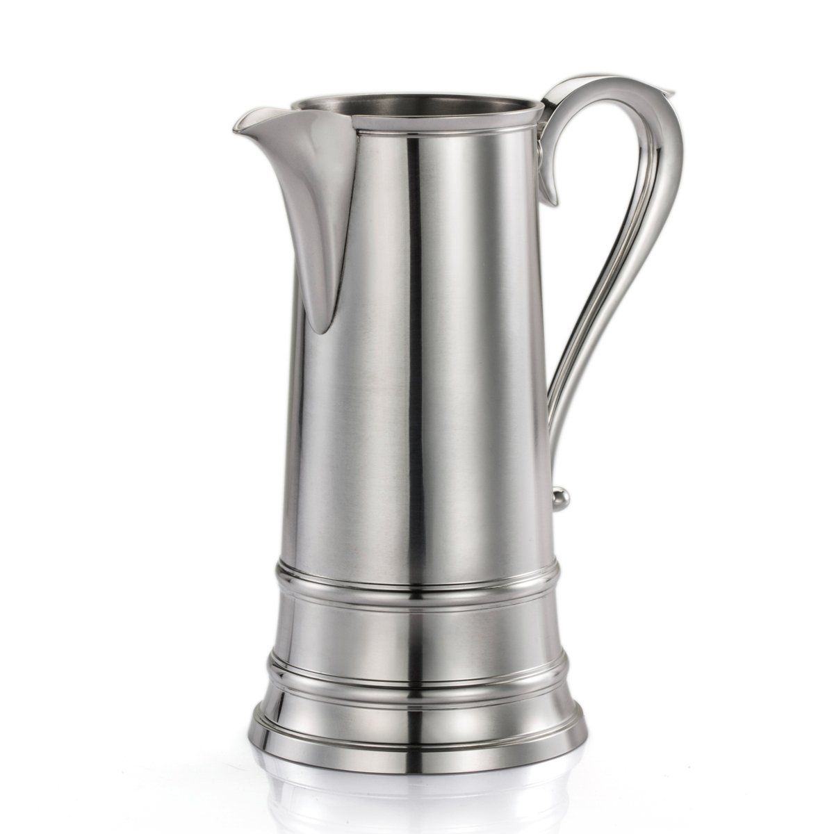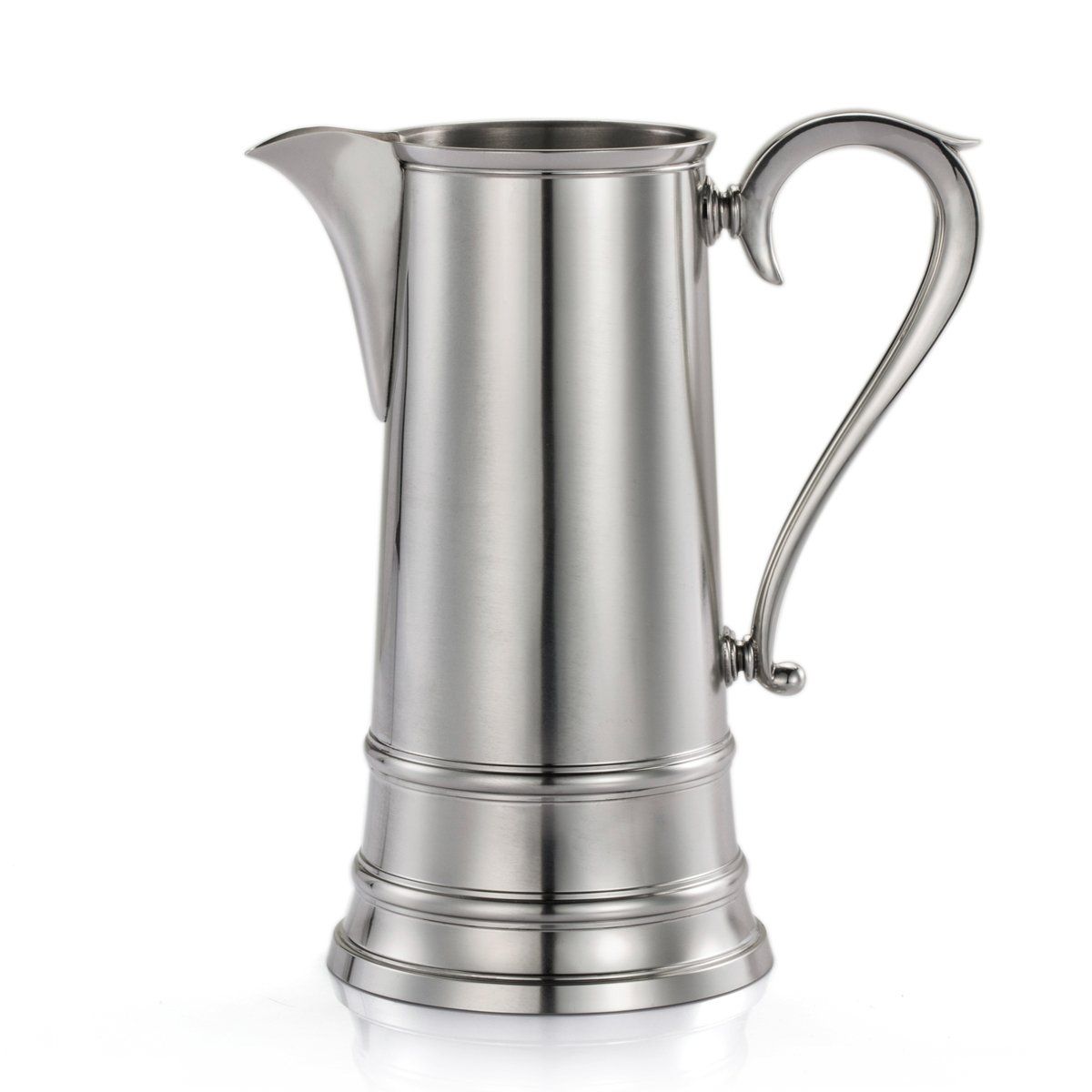 The elegantly tapered spire flagon of the early 1800s, with its expressive spout and sweeping handle, lends it form to Liberty’s jug. Whether dispensing wine, juice or water, it brings a quiet dignity to the most casual of tables.