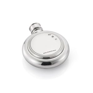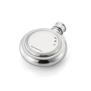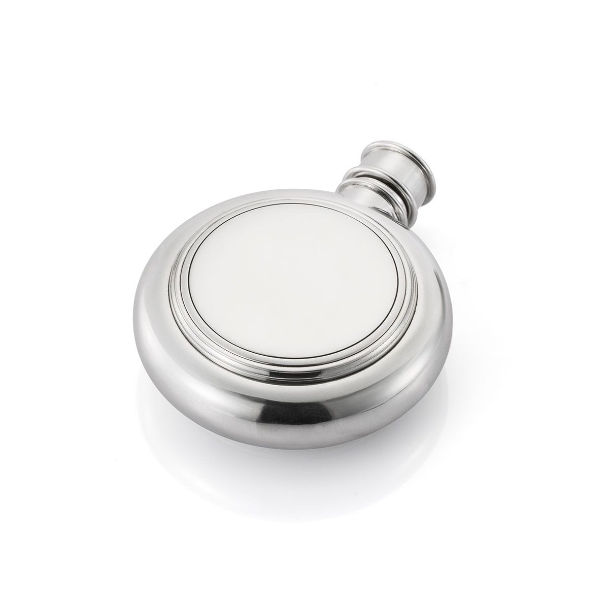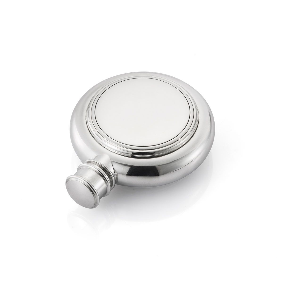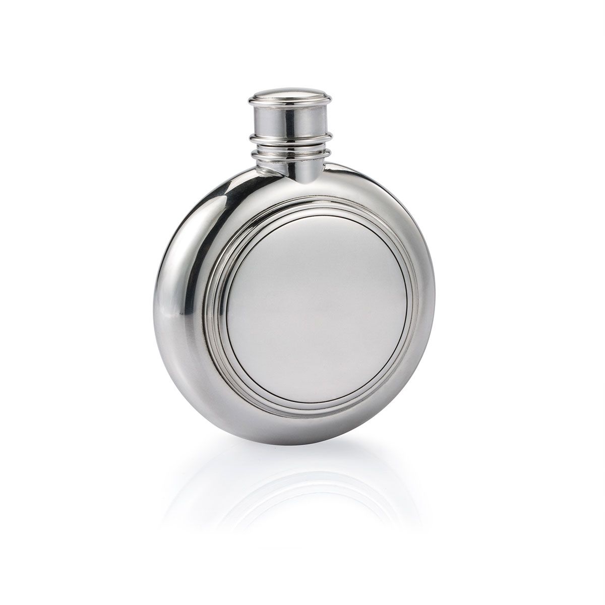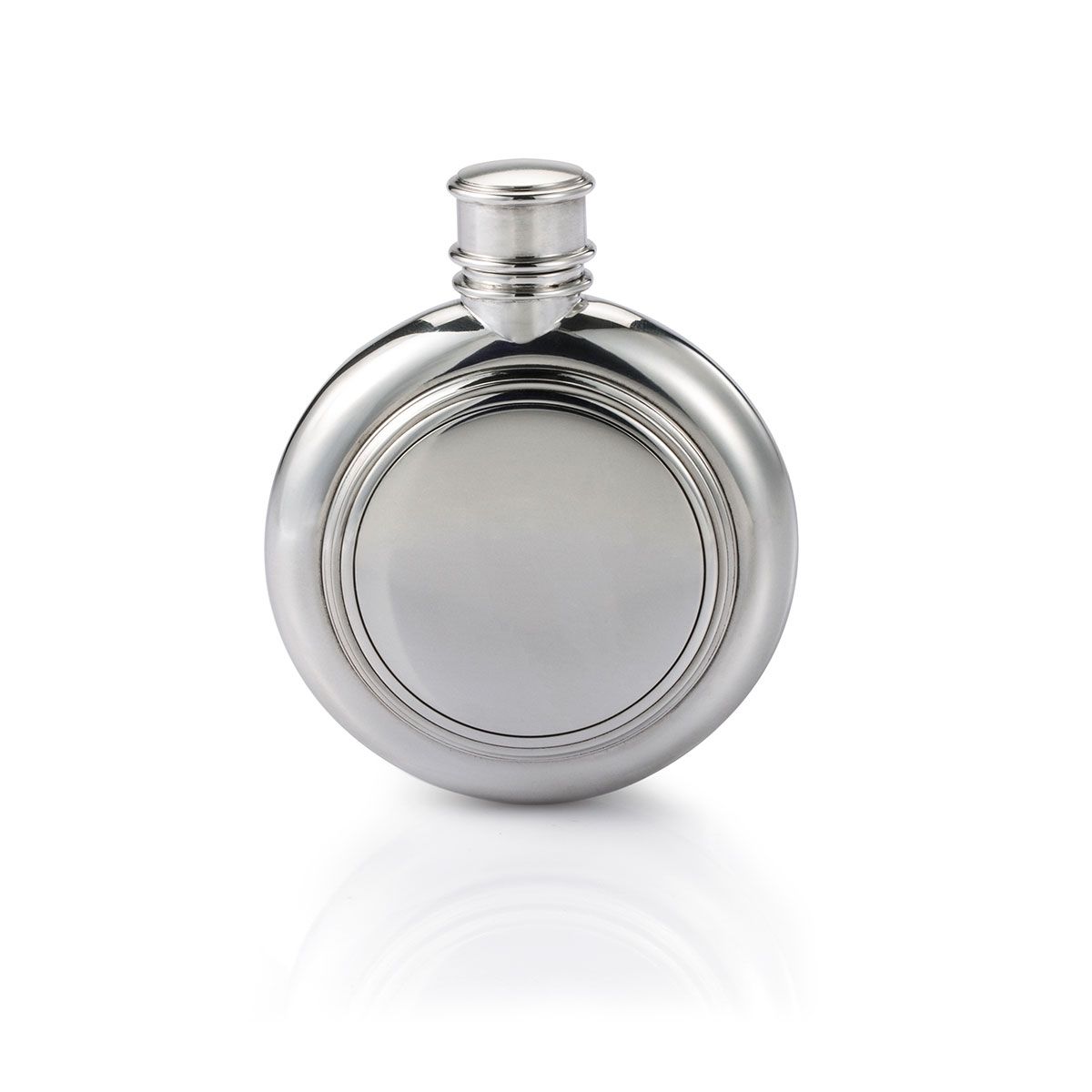 Traditional metalware mouldings, reminiscent of their architectural counterparts, embellish this handsome hip flask in brilliant finish pewter, based on a late 18th century example.