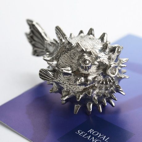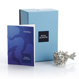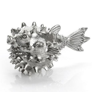 Not only do pufferfish balloon when threatened, their inflated bodies bristling with sharp spines, they are amongst the most poisonous animals in the world. Ours in brilliant finish pewter is a completely benign variety, its only function to sit in the neck of a decanter, aerating wine by disturbing its flow when being decanted.