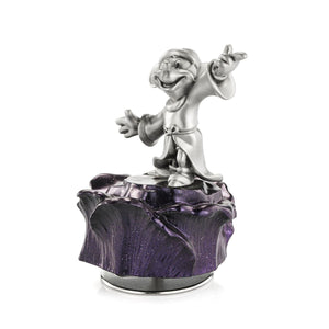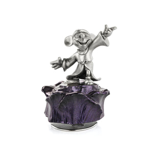 Having borrowed the great sorcerer’s hat without his knowledge, and conjured a spell to complete his laborious chores, apprentice Mickey dozes off, dreaming of himself directing stars, planets and oceans in a dance to the hypnotic notes of The Sorcerer’s Apprentice. Little does he realise what his spell has gotten up to. In pewter, on a plinth of composite resin.