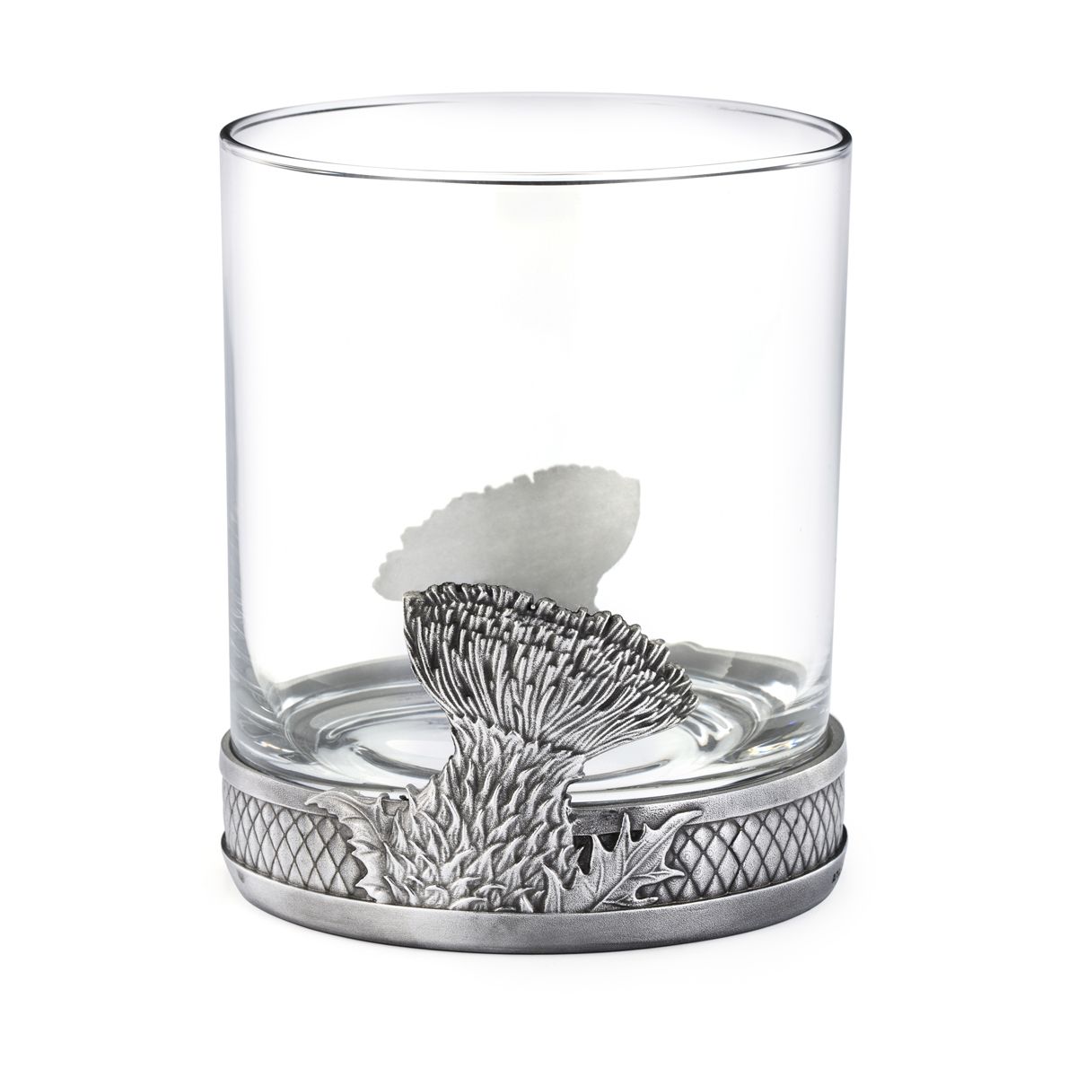 An immediately recognisable part of Scottish heraldry since the 16th century, the thistle seems a natural companion to a generous pour of Scotch. In pewter, on an old-fashioned glass.