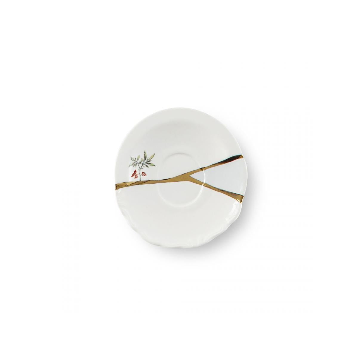 Kintsugi Japanese art assumes contemporary shapes. The delicate porcelaine is glorified and enriched with gold fragments for a tableweare collection made of charming and unexpected compositions. Coffee Cup with saucer Design: Marcantonio