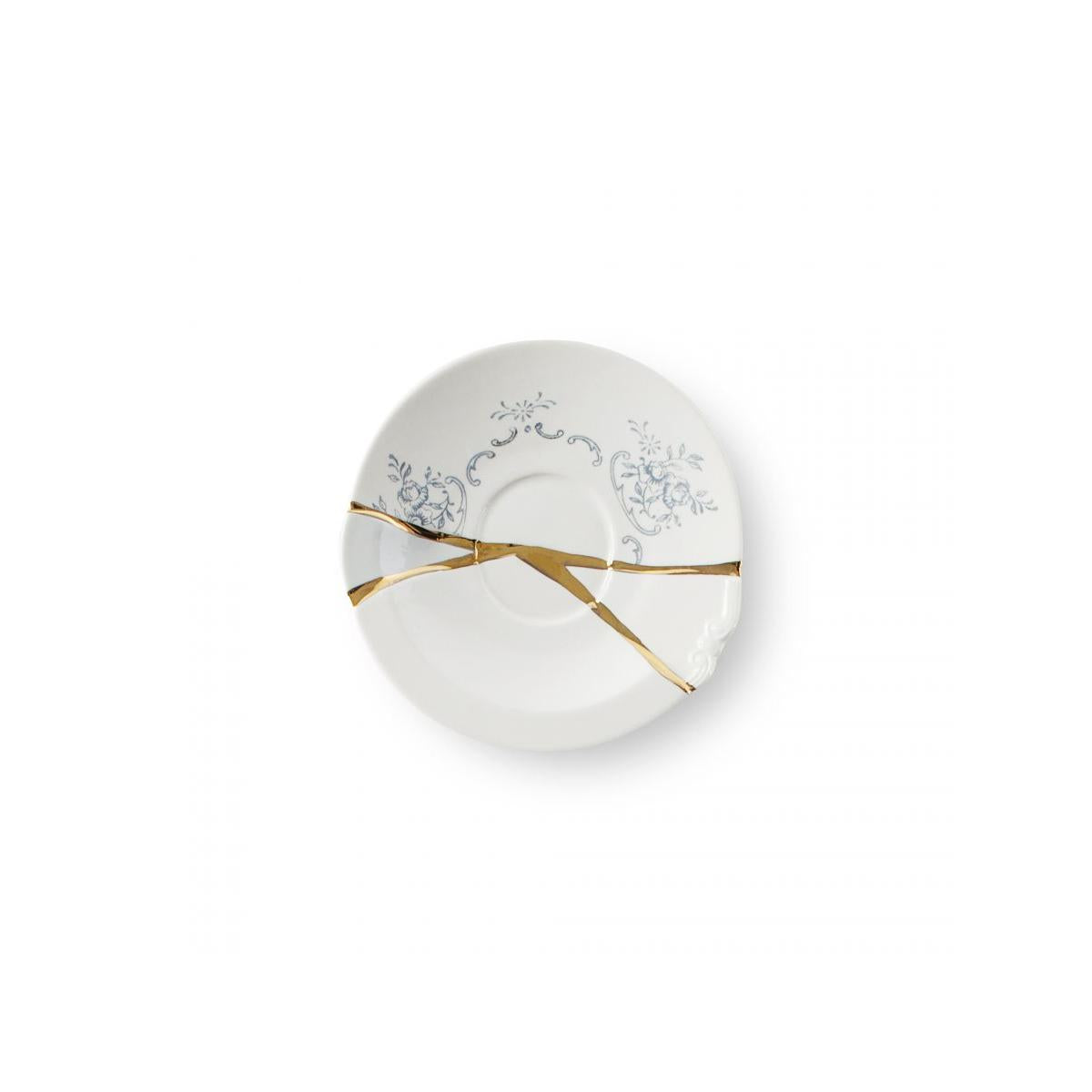 Kintsugi Japanese art assumes contemporary shapes. The delicate porcelaine is glorified and enriched with gold fragments for a tableweare collection made of charming and unexpected compositions. Coffee Cup with saucer Design: Marcantonio