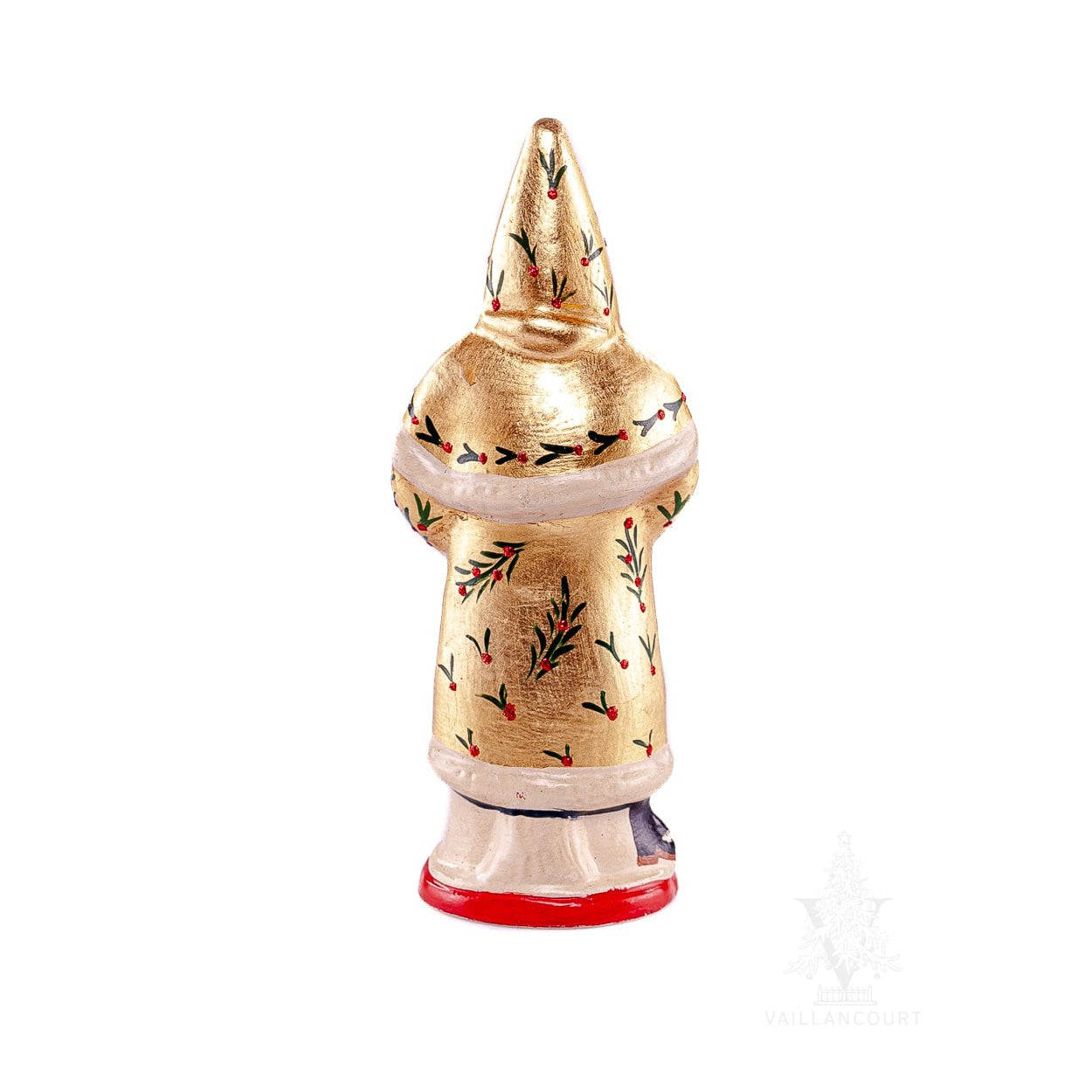 folk art - traditional gold santa holding pineapple chalkware figurine