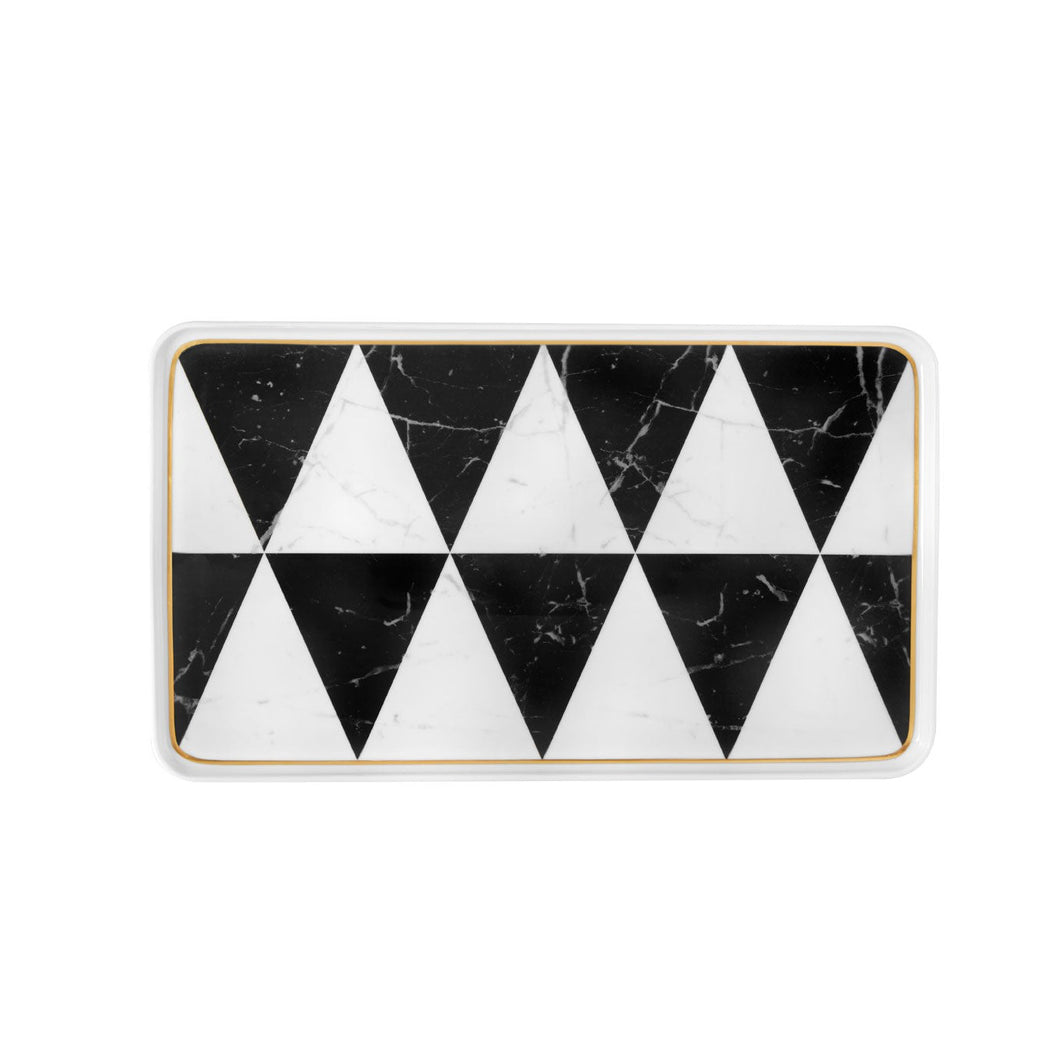 The combination between porcelain and drawings inspired by the noble marble of Carrara, a very refined, geometric approach, creates the illusion that each piece of the set is interchangeable. An unexpected collection created by French designer Coline le Corre. Collection awarded with an honorable mention by the German Design Award 2017 and award winning with a Red Dot Design Award 2017.