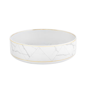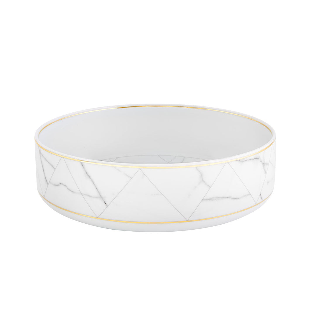 The combination between porcelain and drawings inspired by the noble marble of Carrara, a very refined, geometric approach, creates the illusion that each piece of the set is interchangeable. An unexpected collection created by French designer Coline le Corre. Collection awarded with an honorable mention by the German Design Award 2017 and award winning with a Red Dot Design Award 2017.