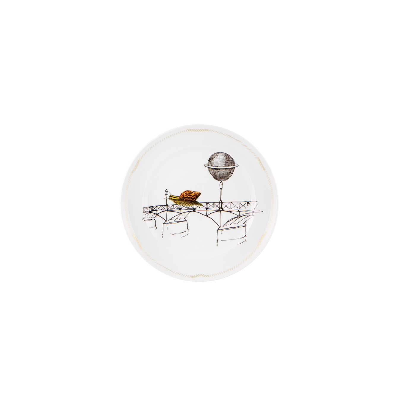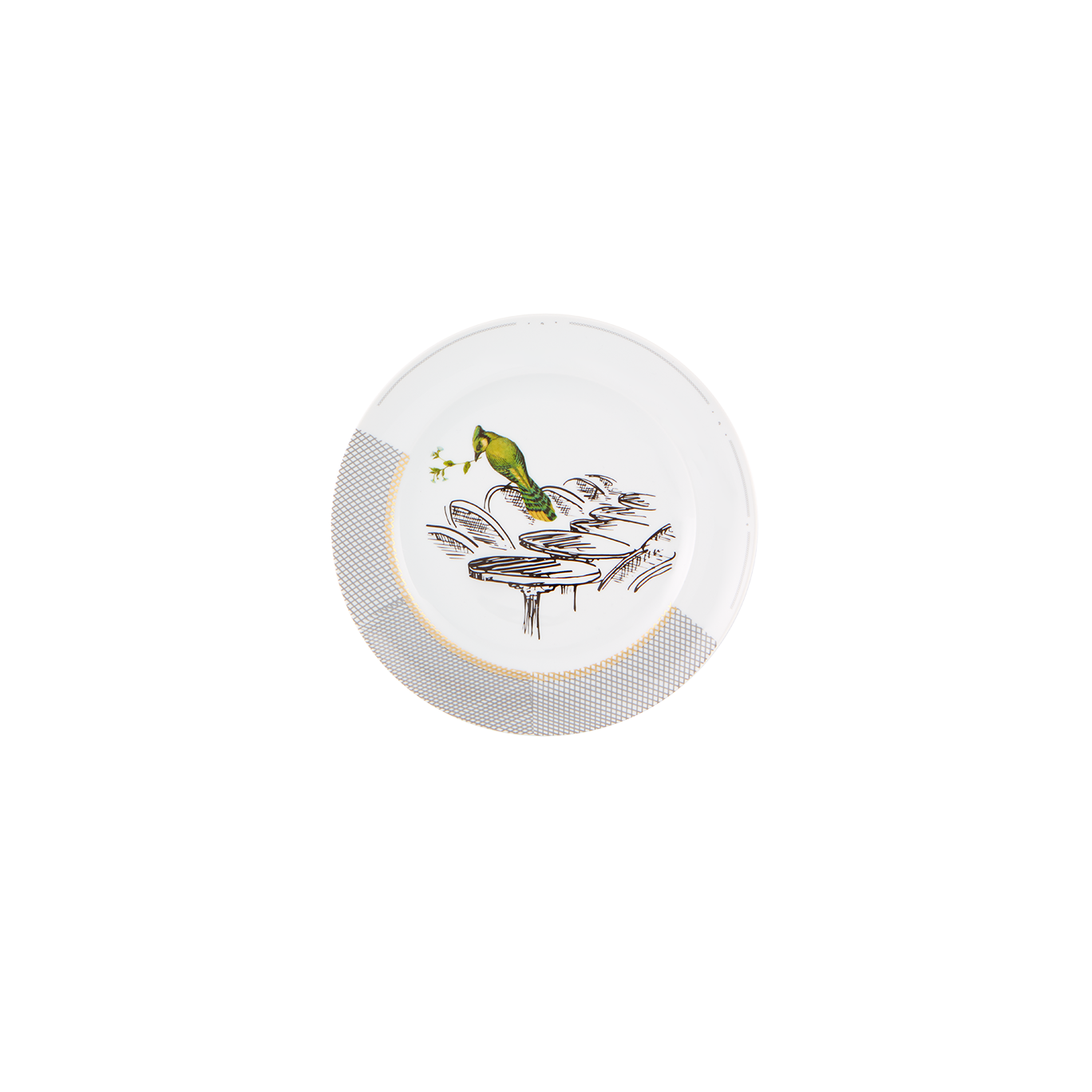“Little stories” from Sam Baron’s dream realm, where collages mingle with sketches, decorating objects with poetic narratives composed of elements such as small flowers, birds, and other prints. The French designer reinterprets Vista Alegre’s decorative codes, modernizing them with his personal touch.