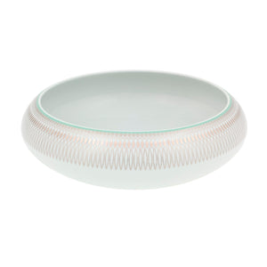 The sophistication of the forms and the platinum decoration contrast with the delicacy of the relief, finished with a touch of colour in degradé. Built for everyday needs, the dishes and cups dispense the platinum, so that they can be used in the microwave. Everyday modernity with details of elegance and distinction.