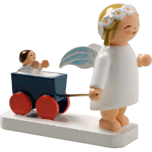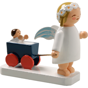 The Wendt & Kuhn Marguerite Angel with Doll Carriage is artfully and colorfully handcrafted by premier artists in Germany.