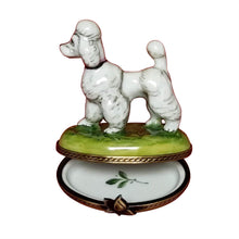 The White Poodle Limoges Box is artfully and colorfully hand painted by premier artists using many of the same techniques that were used during their introduction in the 17th century. Steeped in history, Limoges boxes feature exquisite designs, superior workmanship, and the ultimate attention to detail.
